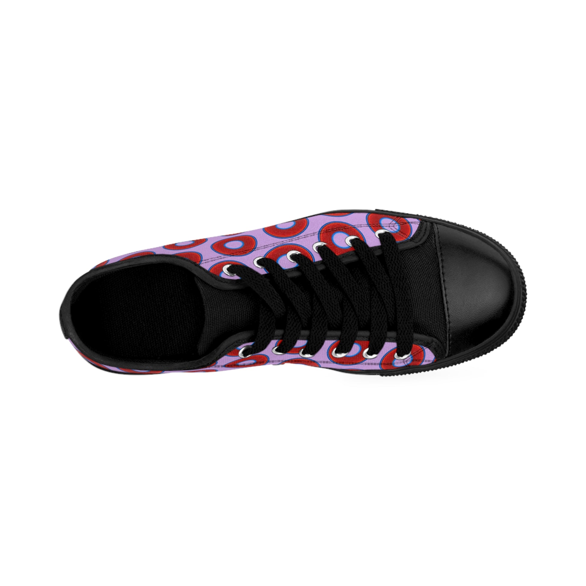 Men's Cushiony Convectors - Low Top - large red vivid donut print w/wisteria purple background