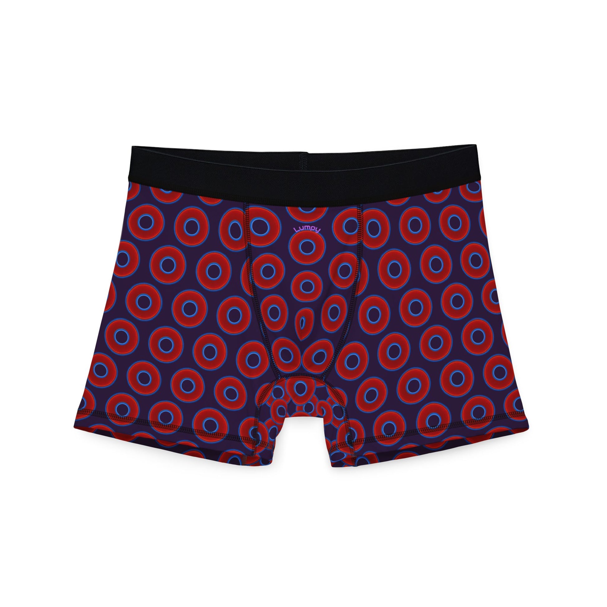 Men's Donut Boxers - red vivid donuts w/midnight purple background