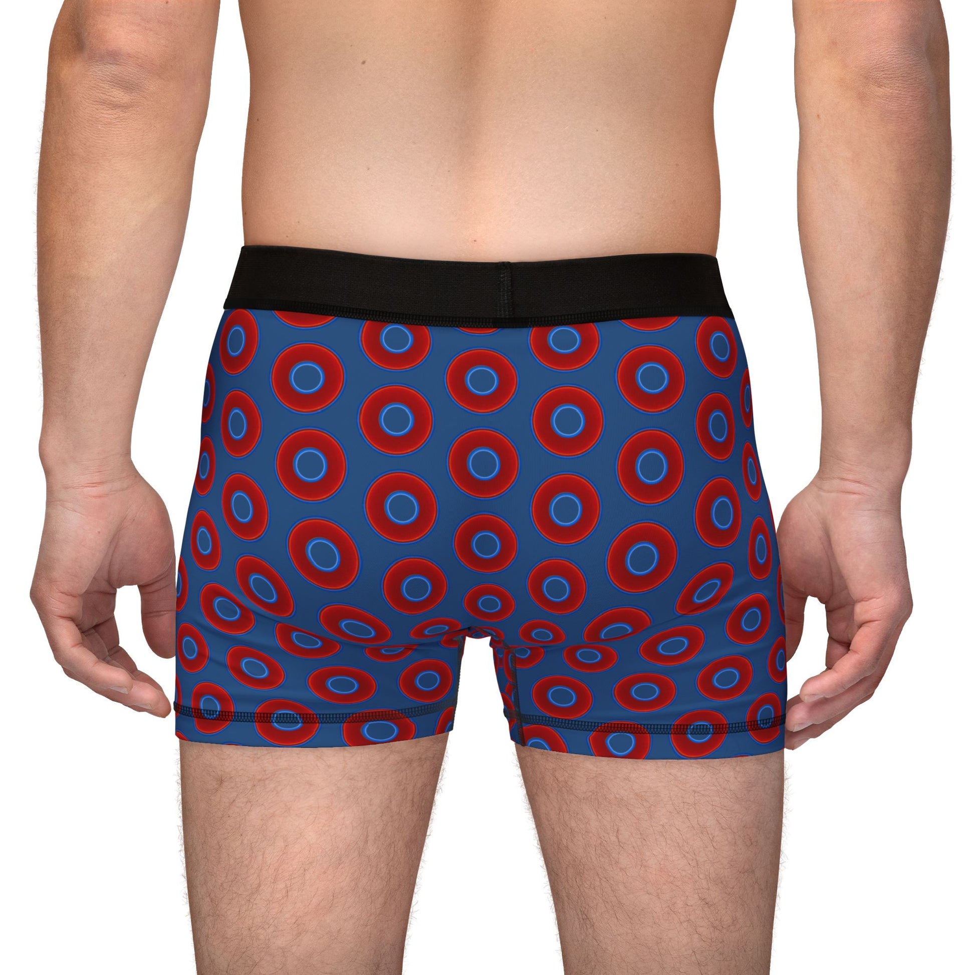 Men's Donut Boxers - red vivid donuts w/light navy blue background