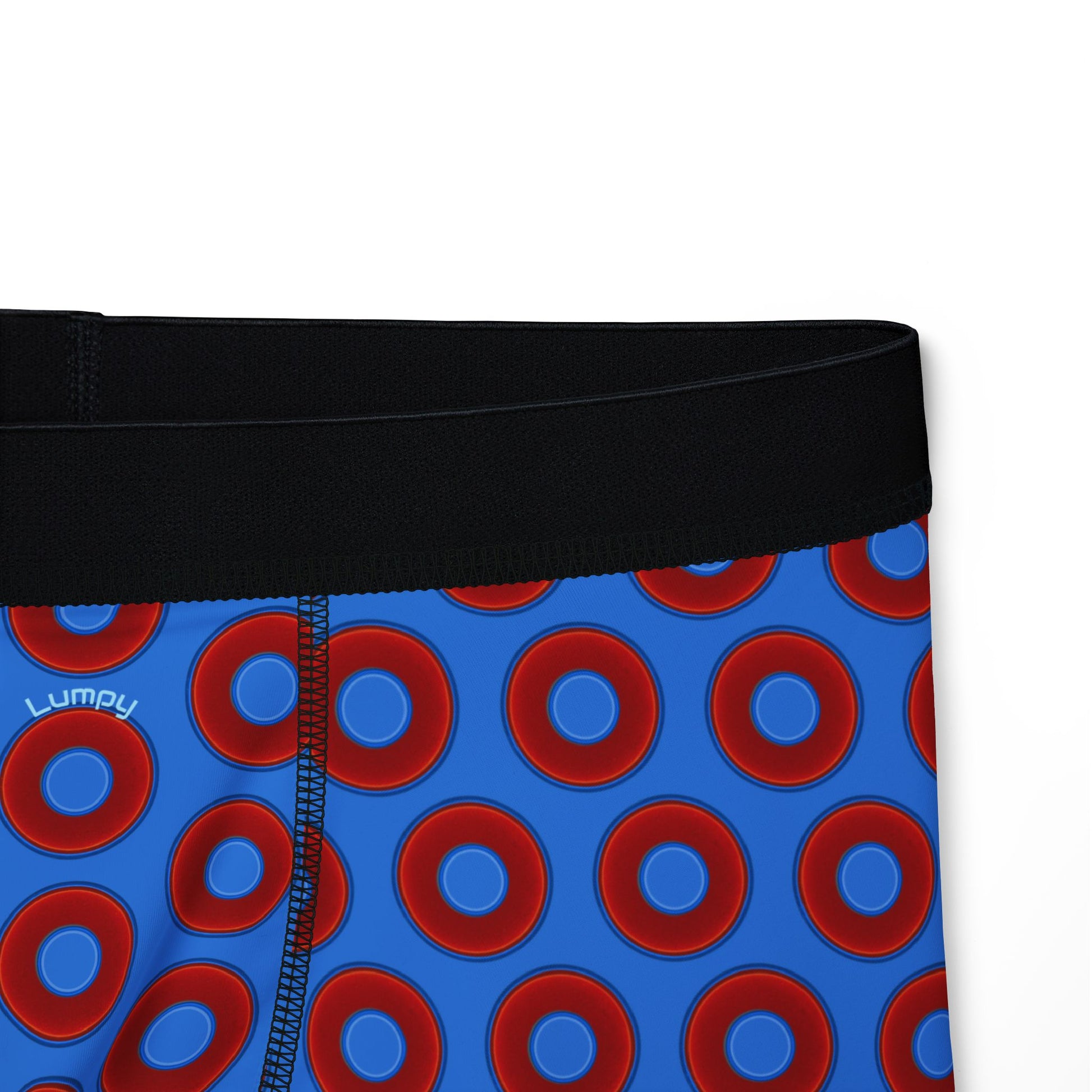 Men's Donut Boxers - red vivid donuts w/light royal blue background