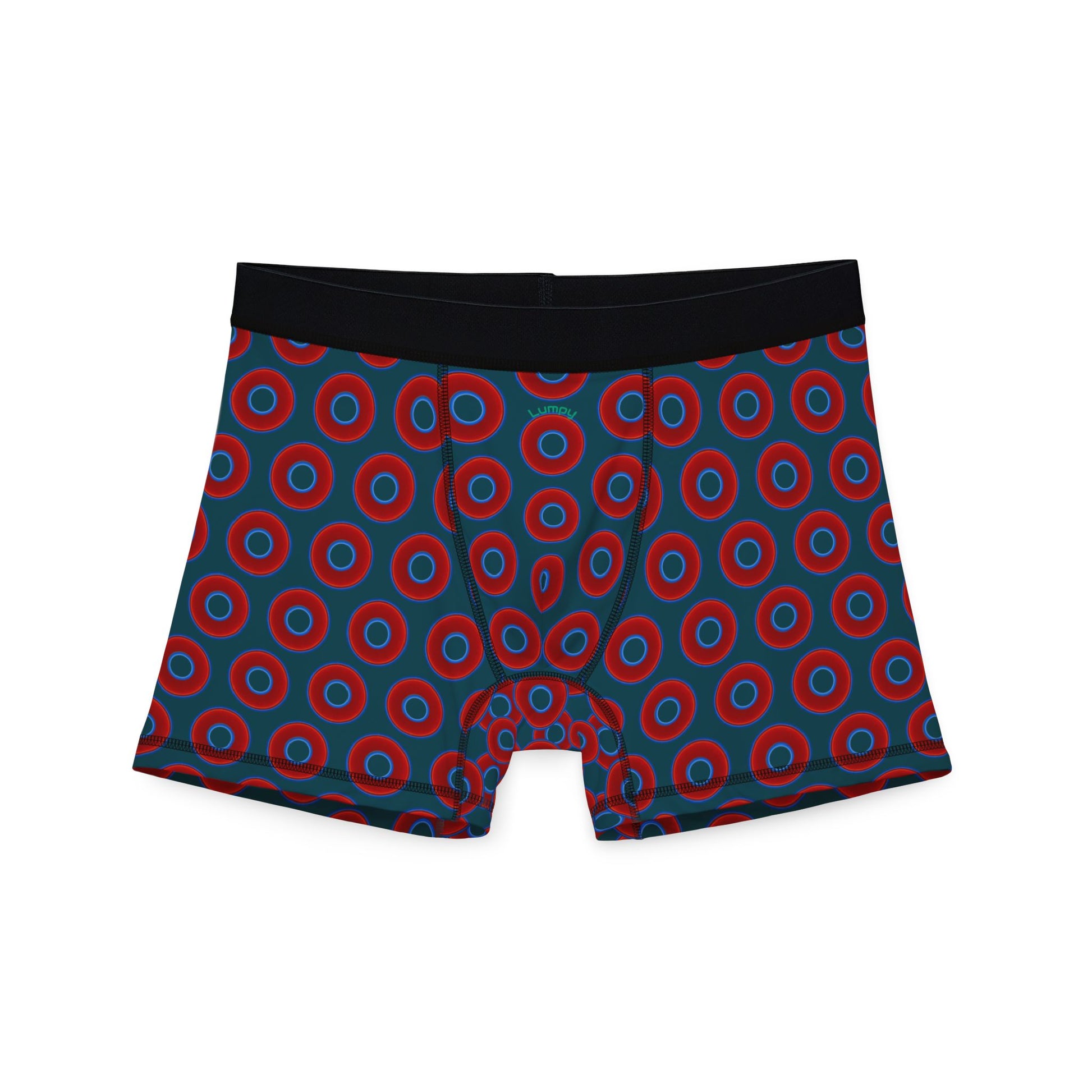 Men's Donut Boxers - red vivid donuts w/midnight teal green background