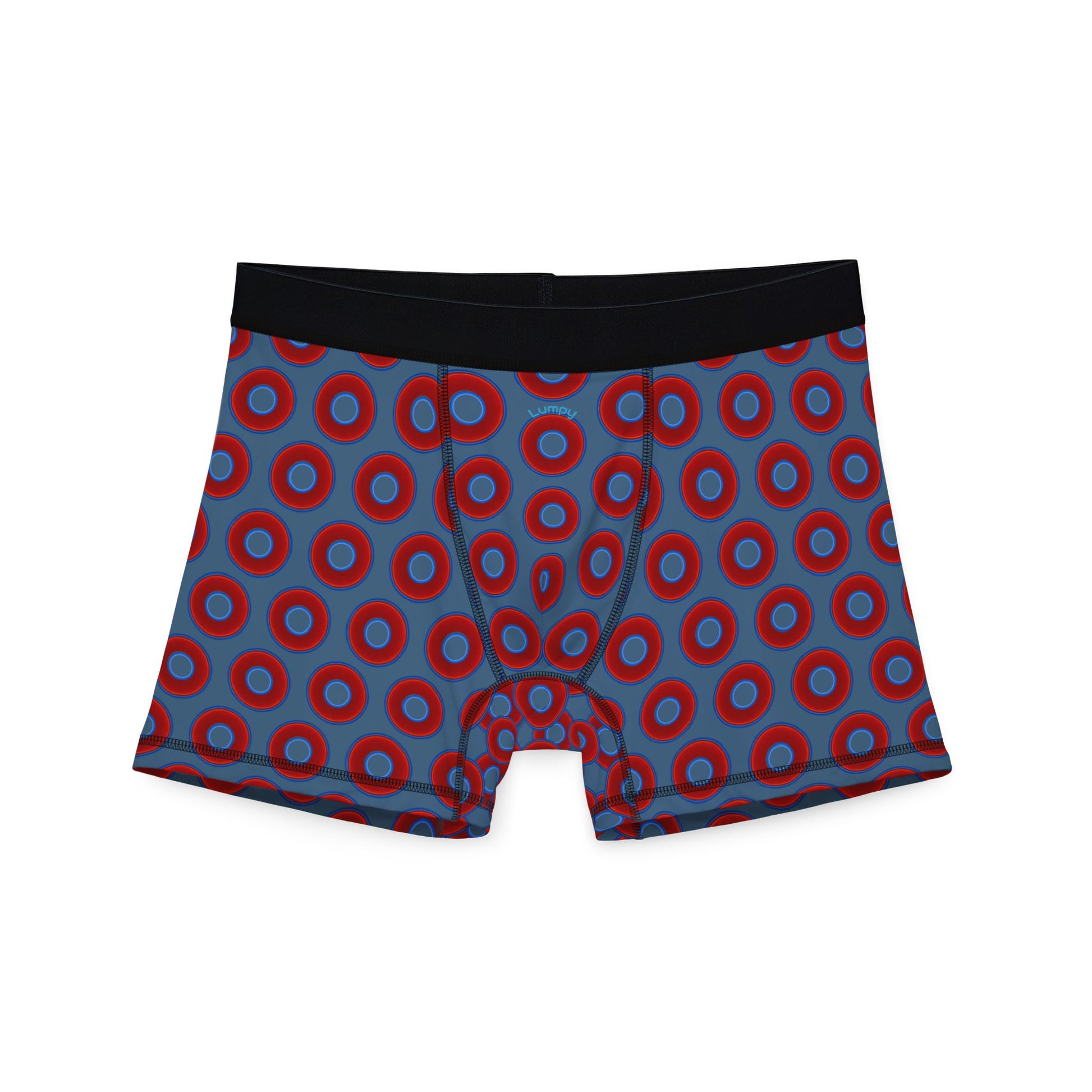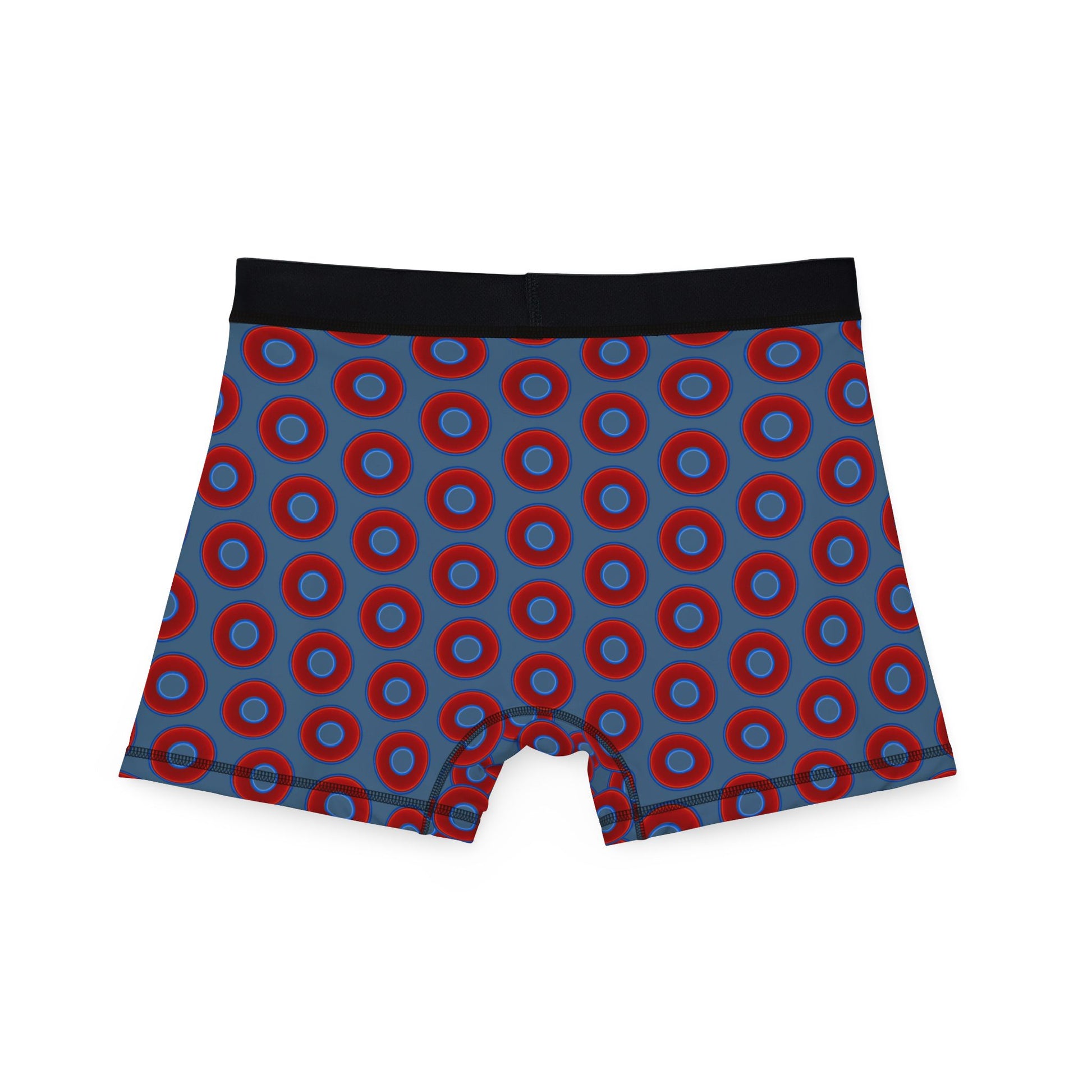 Men's Donut Boxers - red vivid donuts w/steel blue background