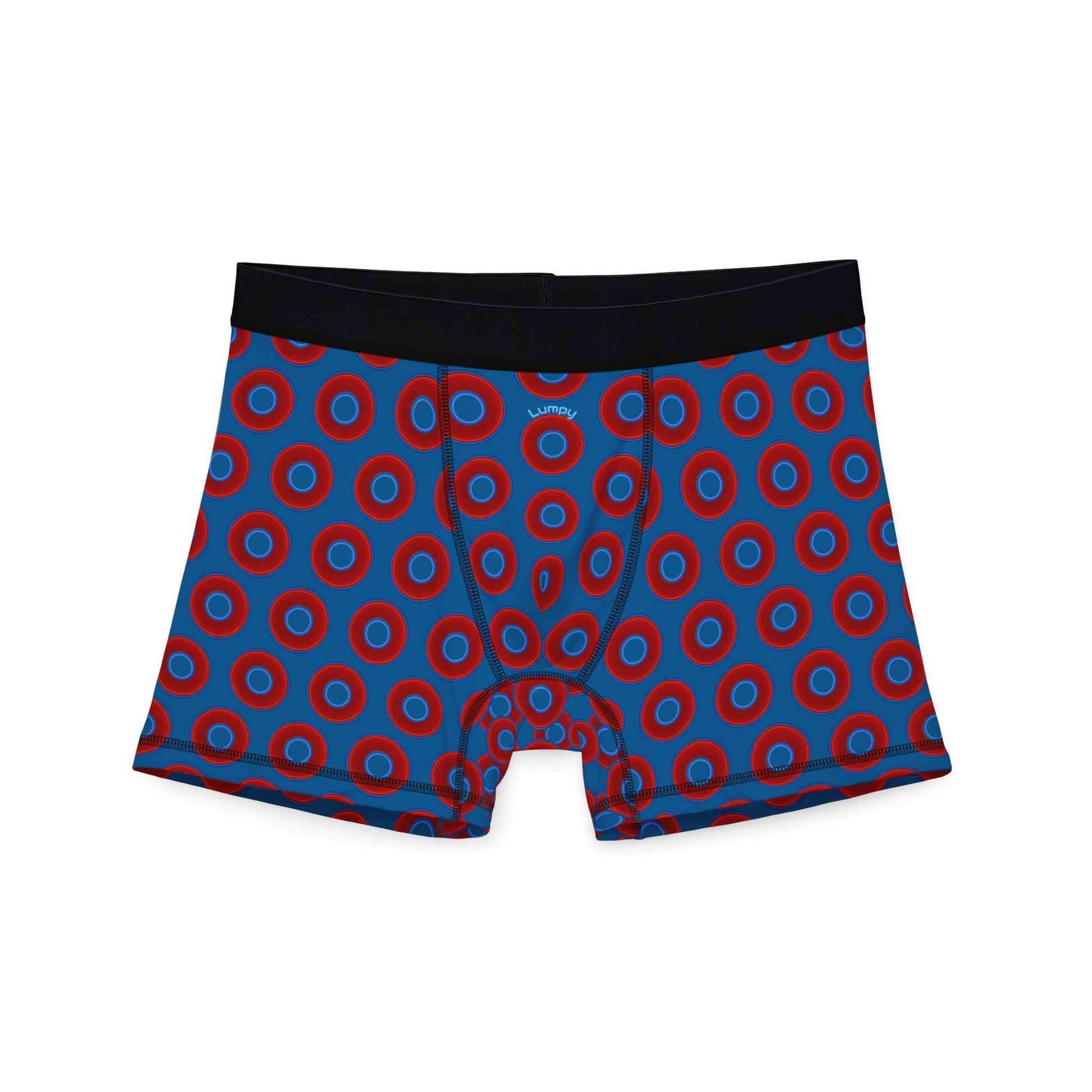 Men's Donut Boxers - red vivid donuts w/wavy navy blue background
