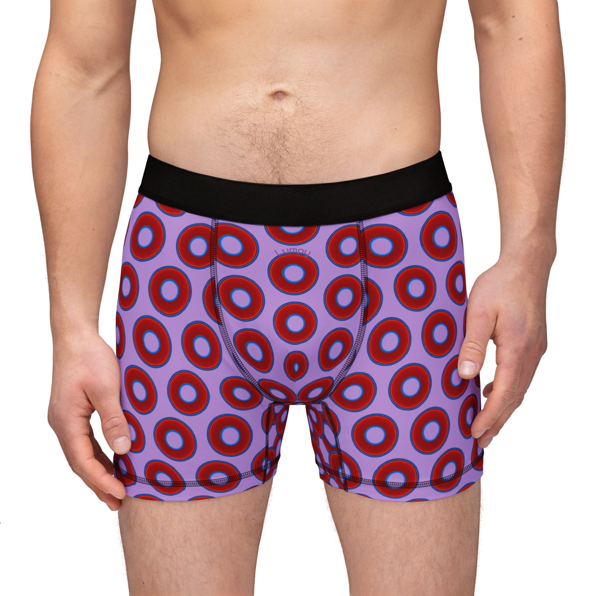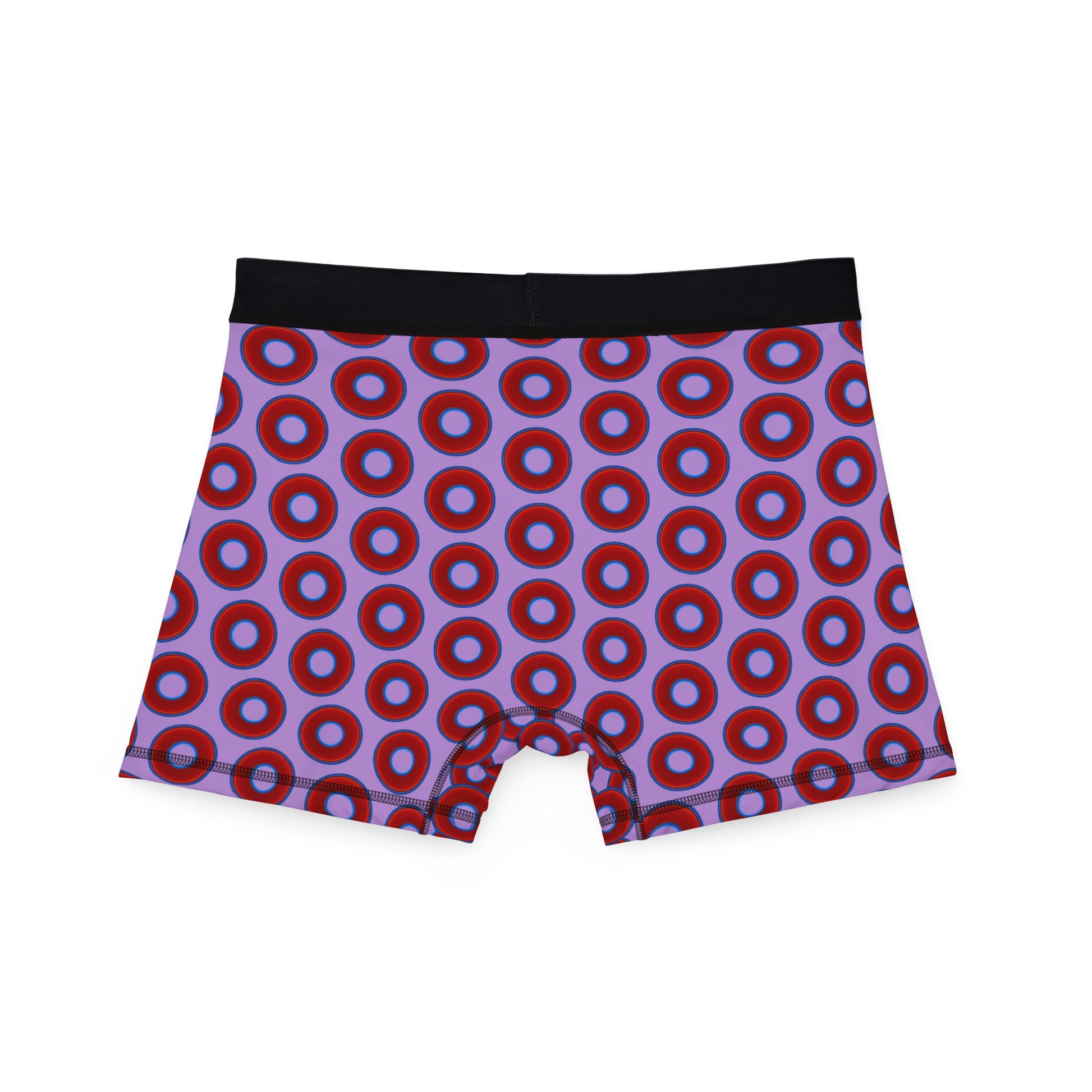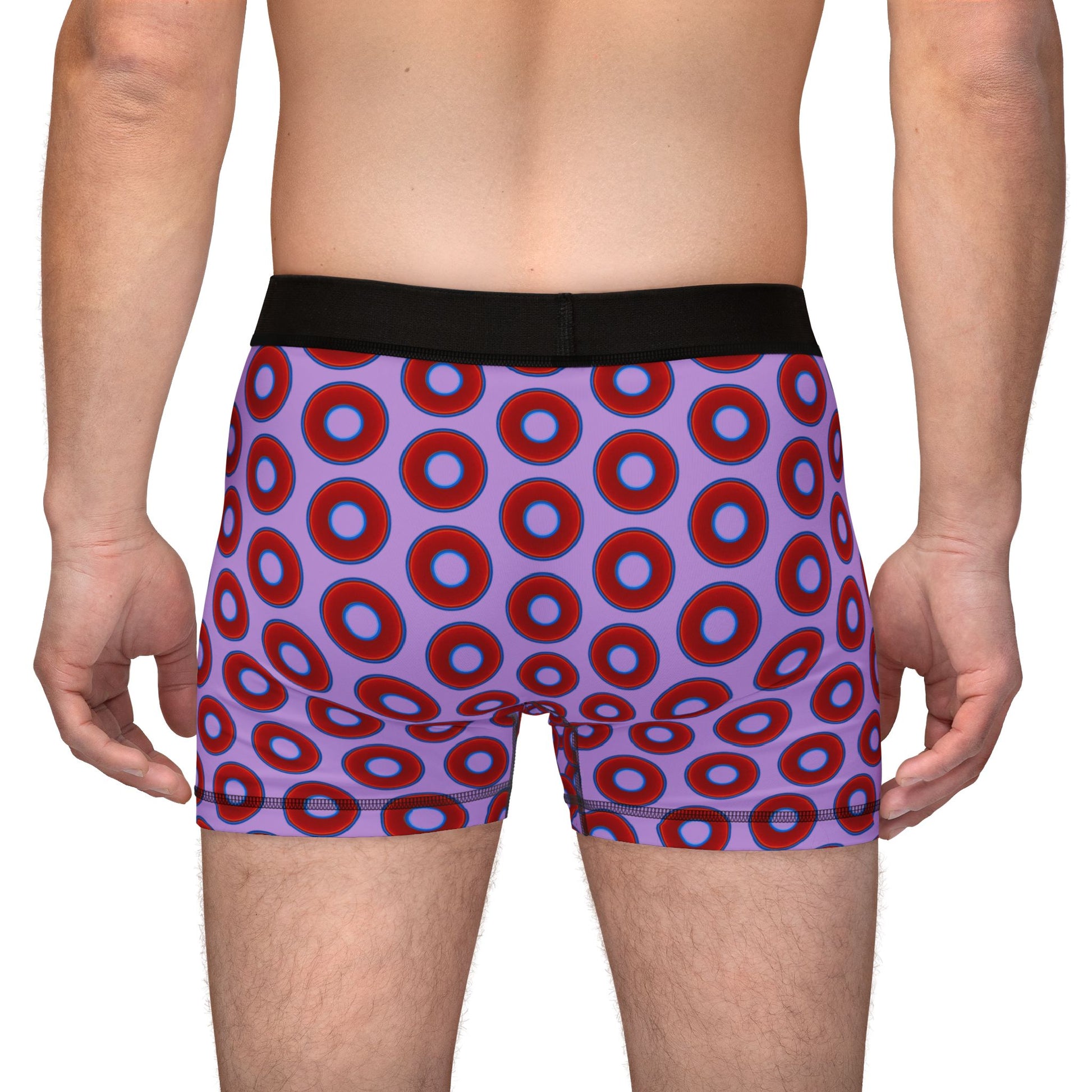 Men's Donut Boxers - red vivid donuts w/wisteria purple background