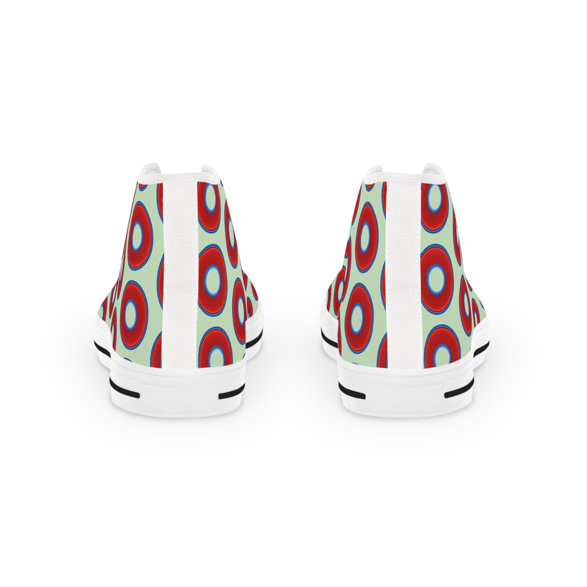 Men's High Top Chucks - large vivid red donut print w/seamfoam background