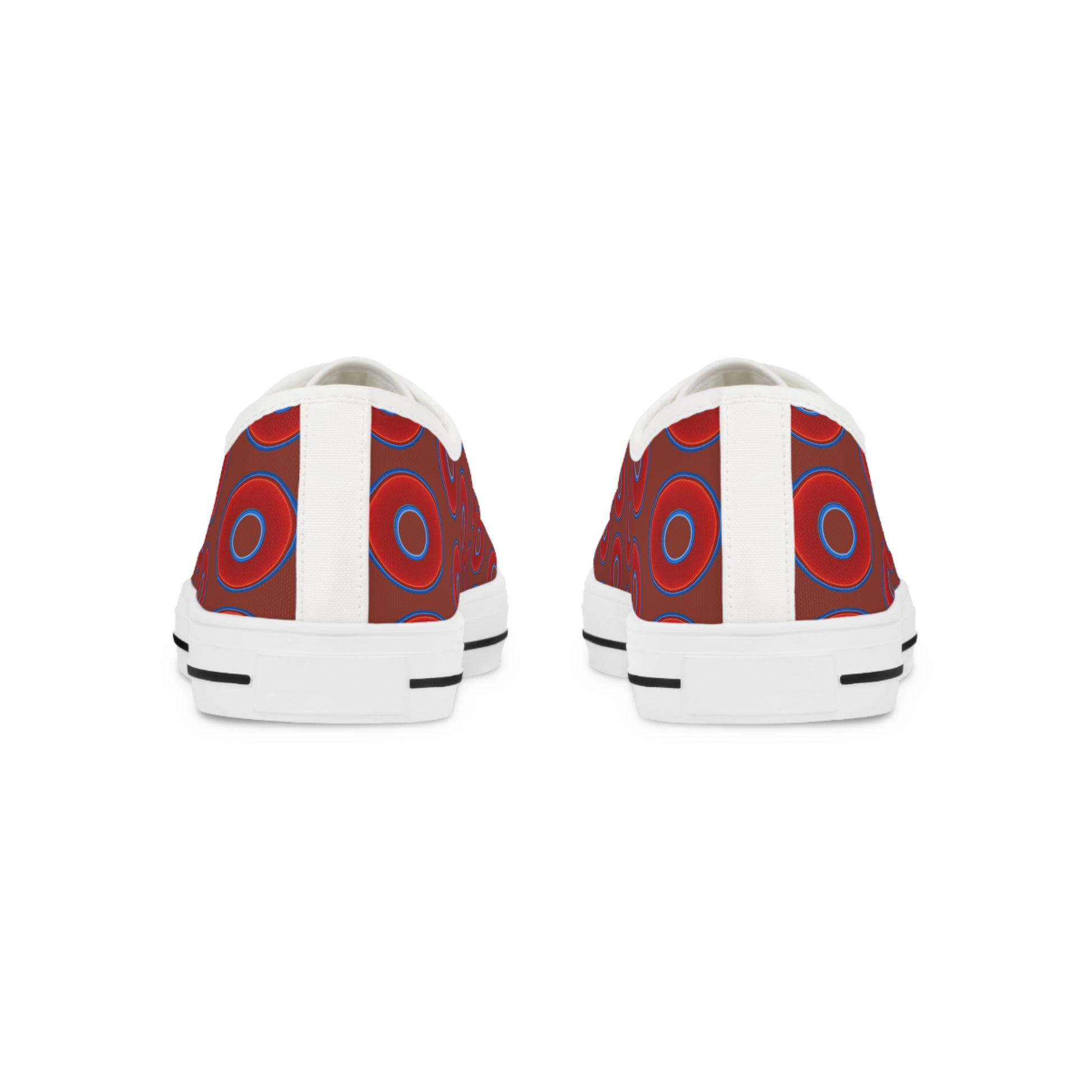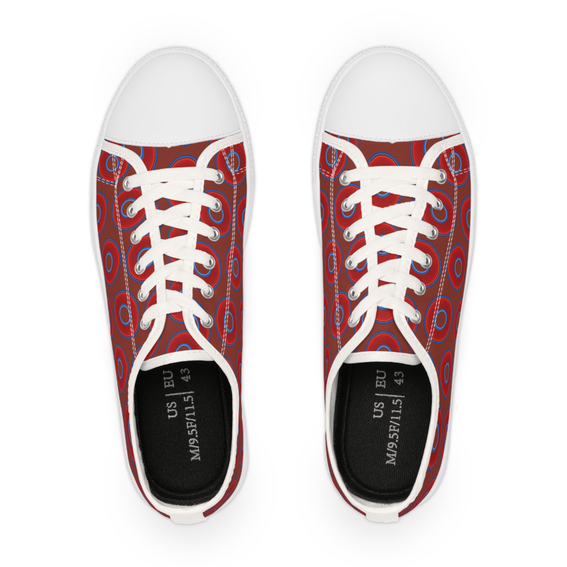 Men's - Low Top Chuck Taylors - large vivid red donut print w/burnt umber background