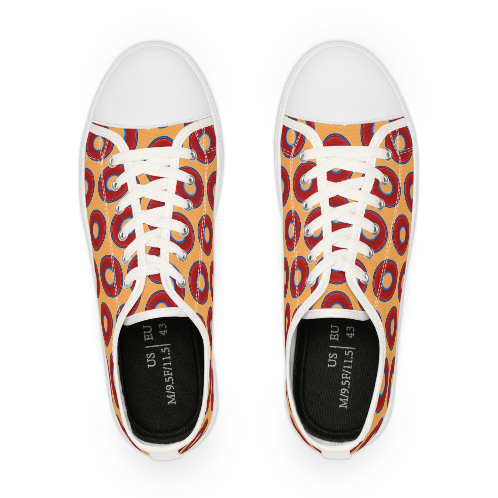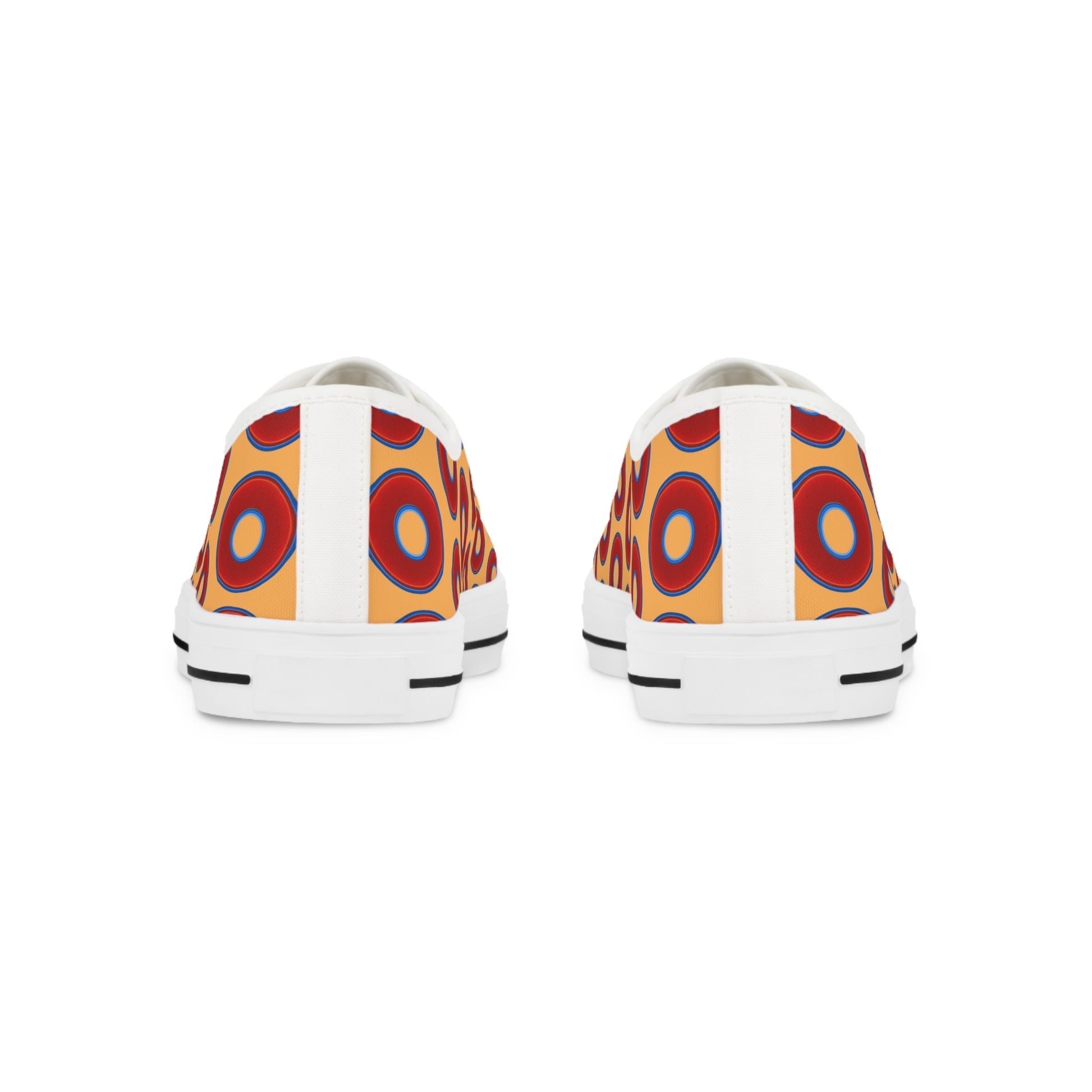 Men's - Low Top Chuck Taylors - large vivid red donut print w/creamcicle orange background