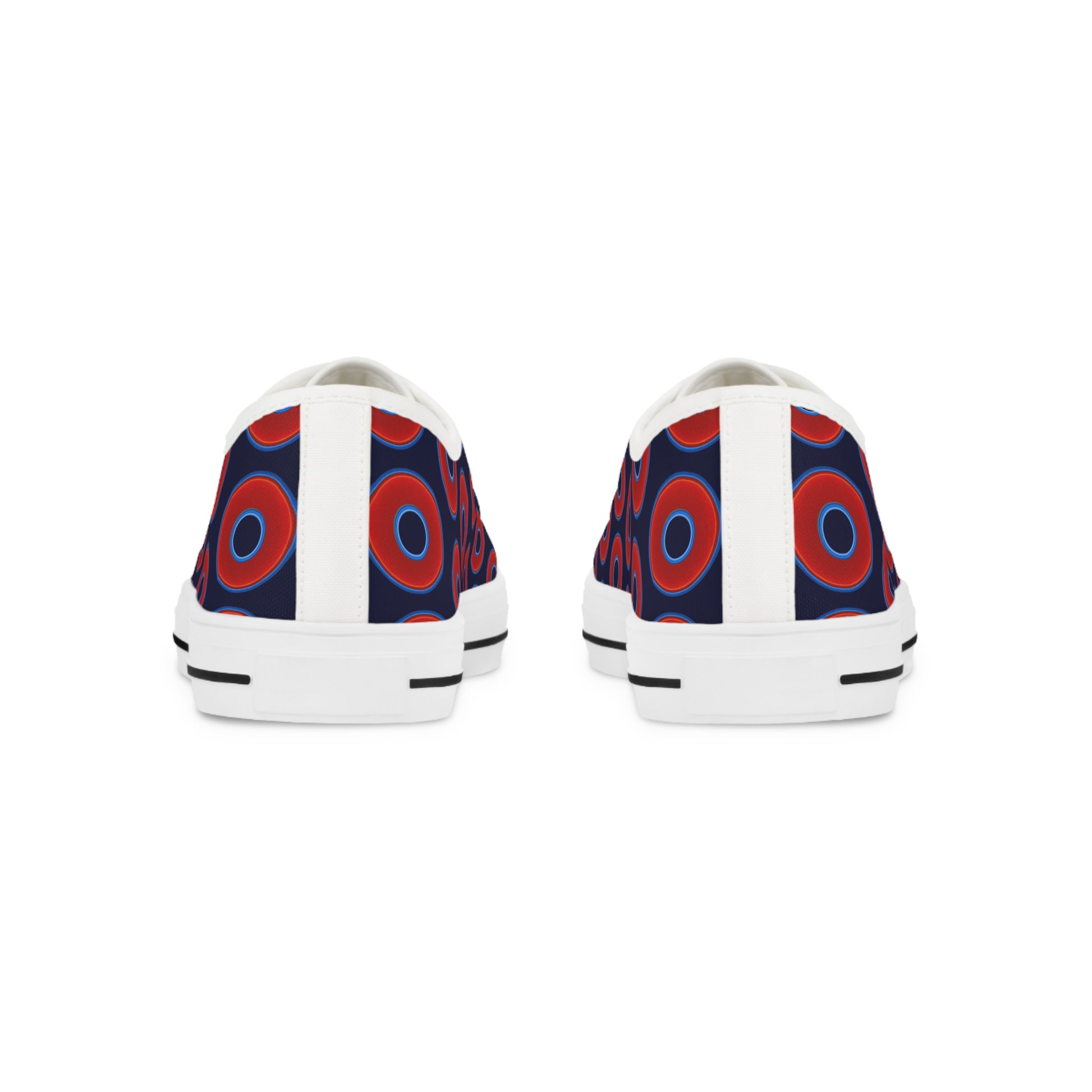 Men's - Low Top Chuck Taylors - large vivid red donut print w/dark navy blue background