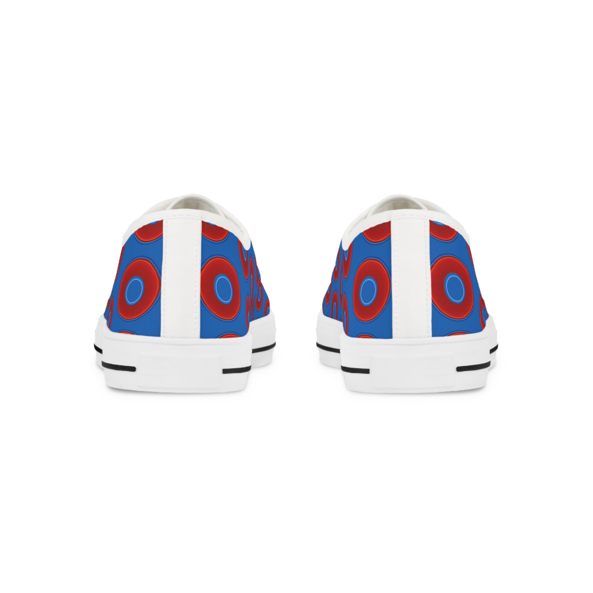 Men's - Low Top Chuck Taylors - large vivid red donut print w/dark royal blue background