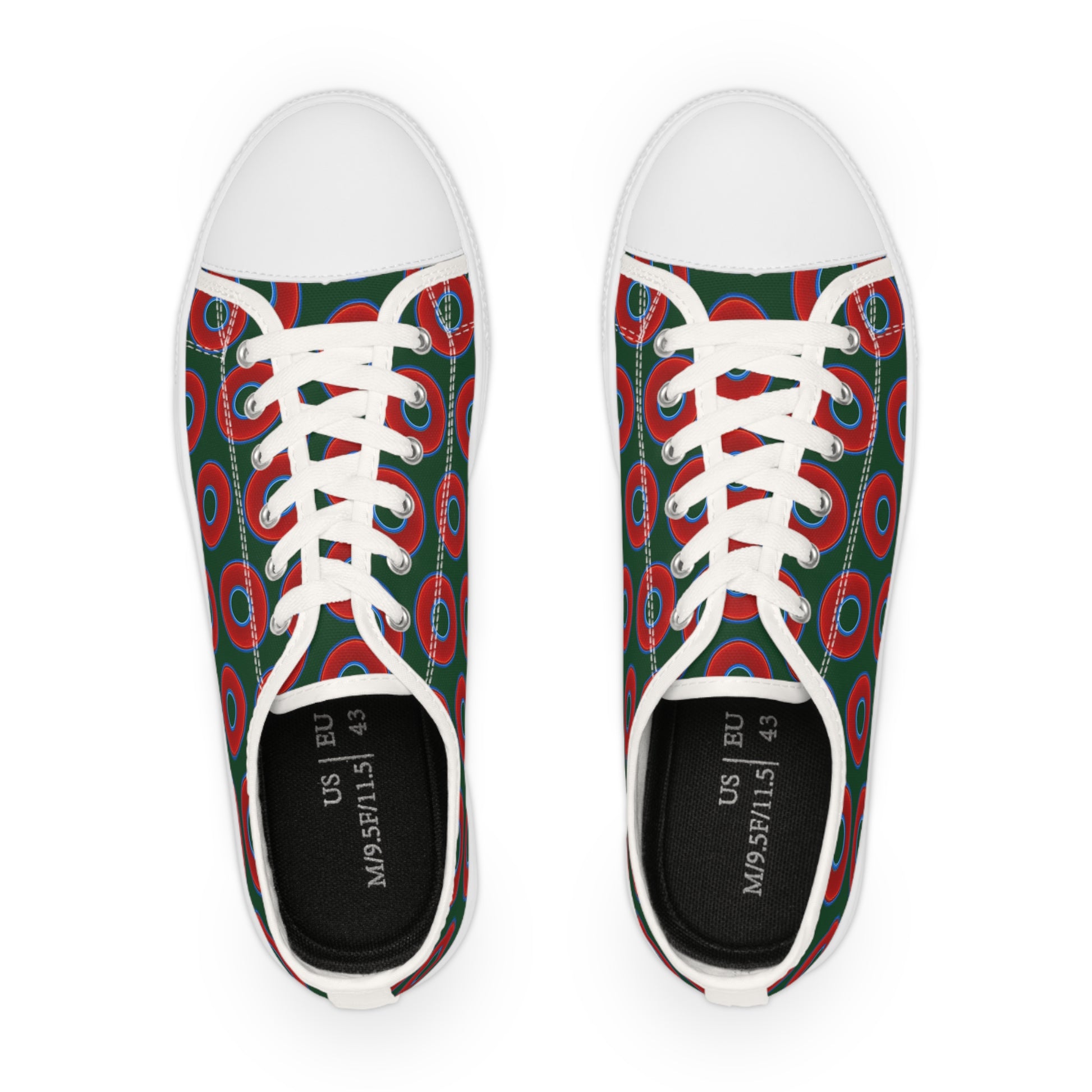 Men's - Low Top Chuck Taylors - large vivid red donut print w/deep pond green background