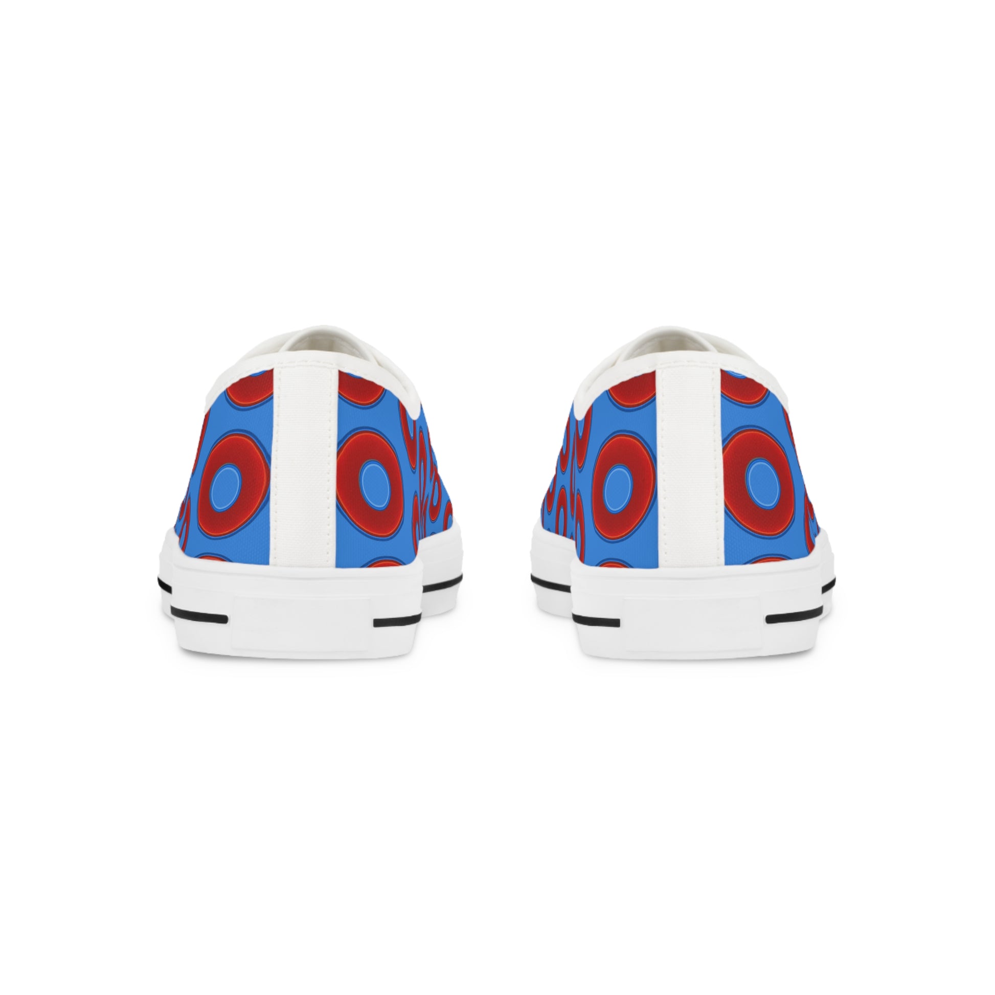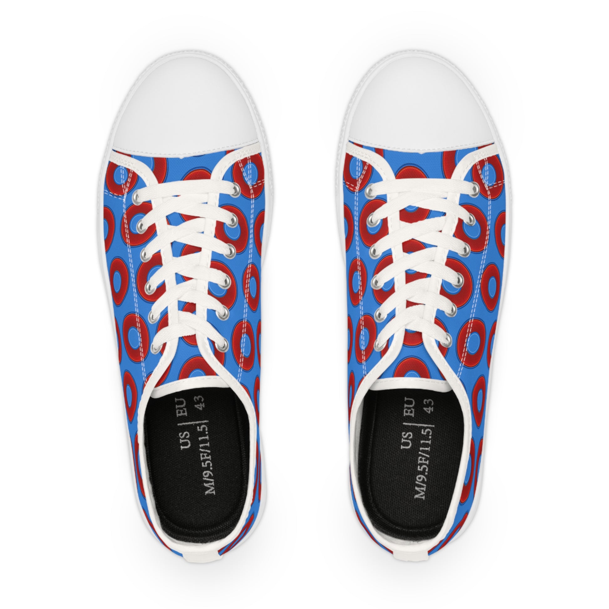 Men's - Low Top Chuck Taylors - large vivid red donut print w/light royal blue background
