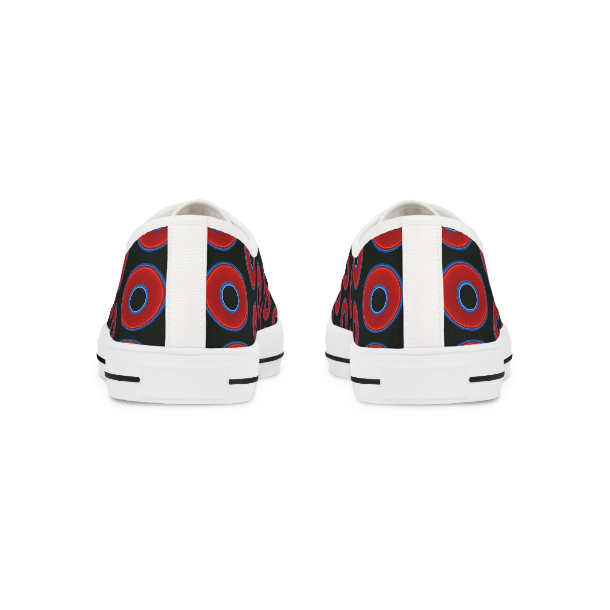 Men's - Low Top Chuck Taylors - large vivid red donut print w/midnight moss green background