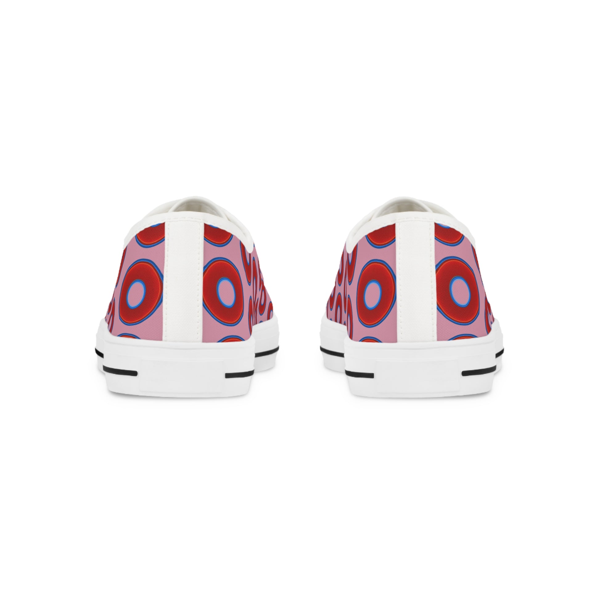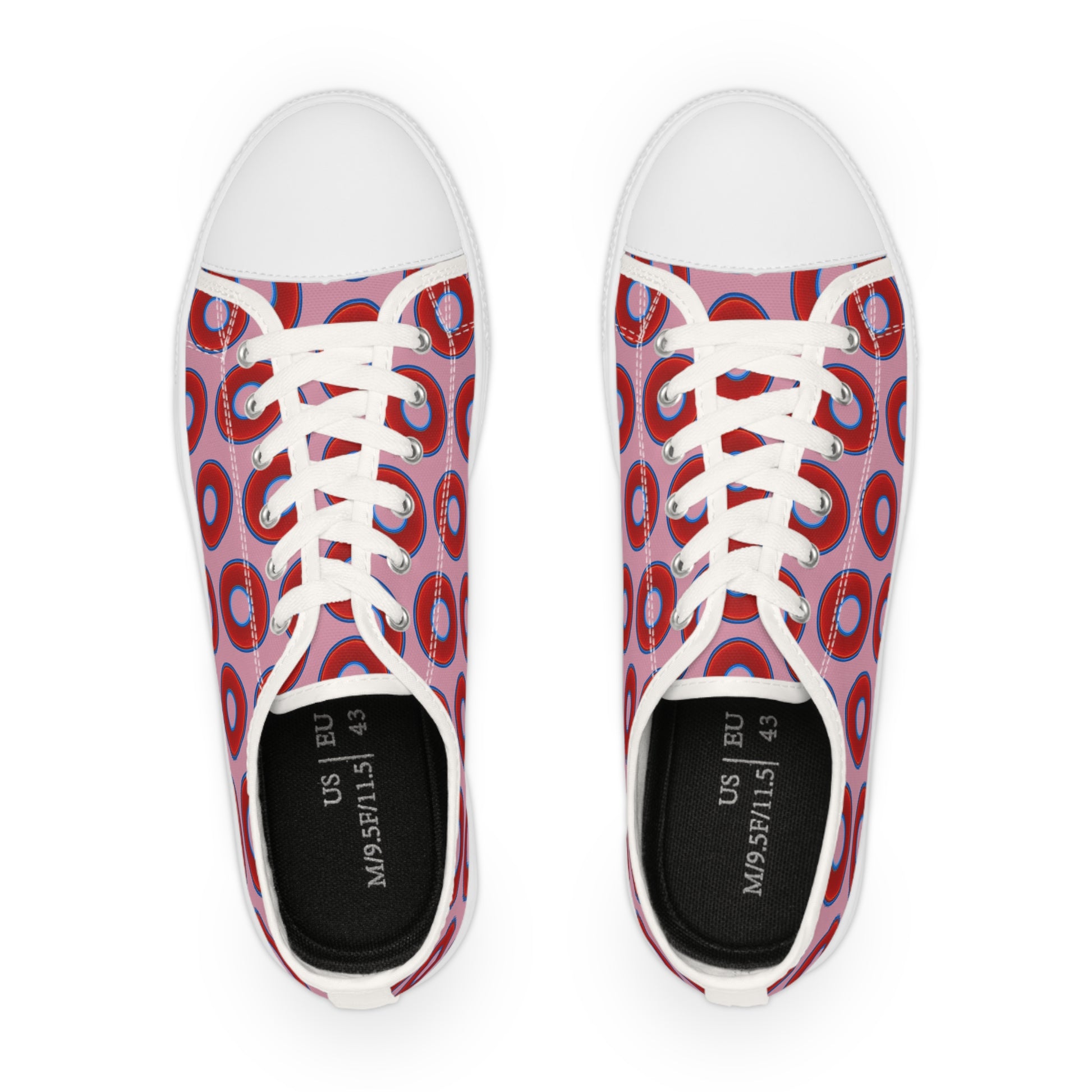 Men's - Low Top Chuck Taylors - large vivid red donut print w/pale magenta background