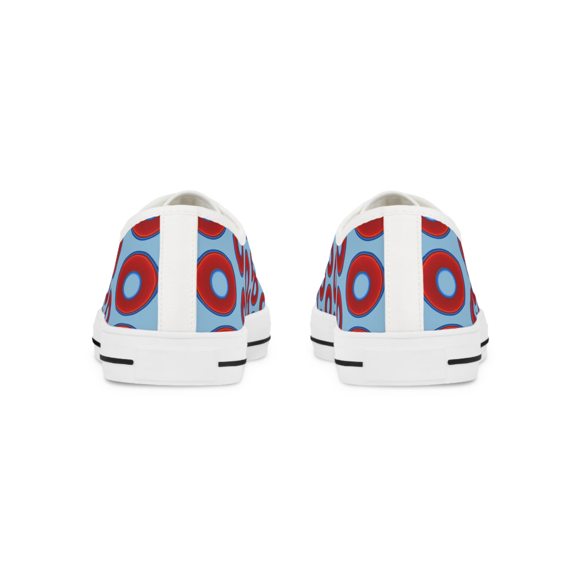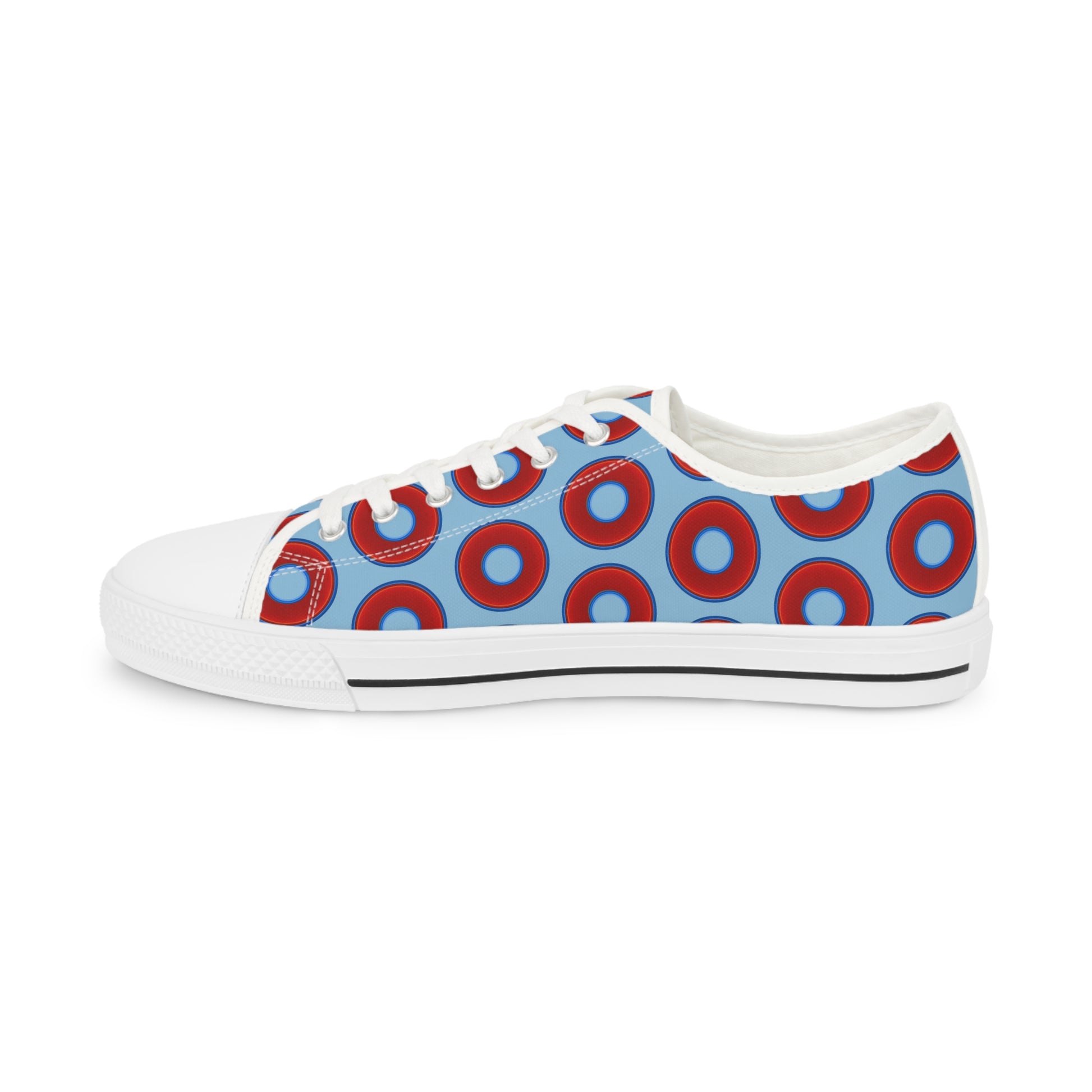 Men's - Low Top Chuck Taylors - large vivid red donut print w/sky blue background