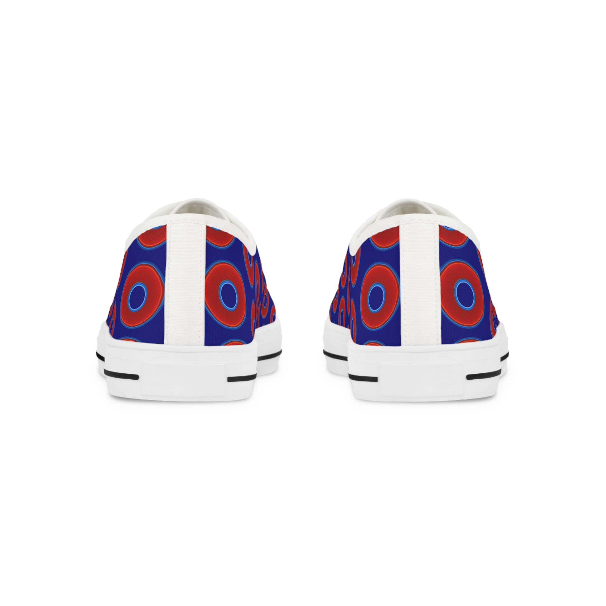 Men's - Low Top Chuck Taylors - large vivid red donut print w/vivid navy blue background