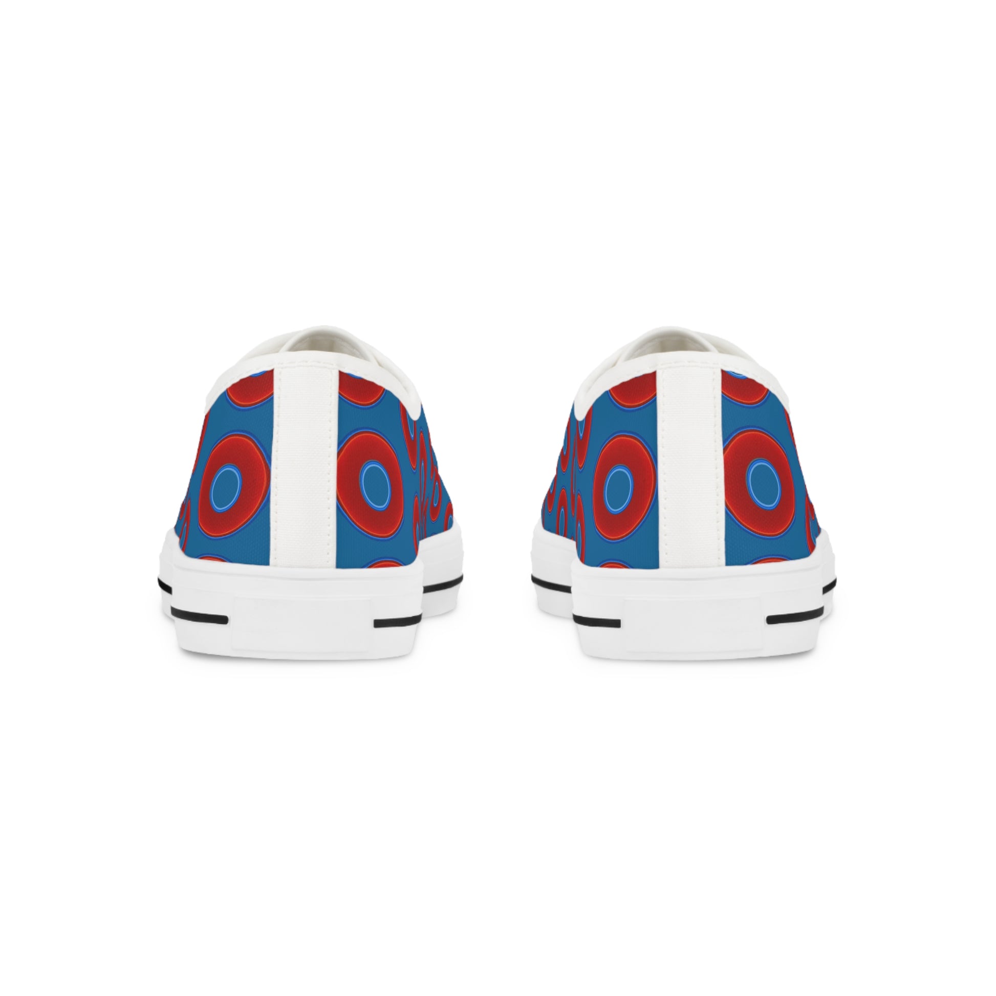 Men's - Low Top Chuck Taylors - large vivid red donut print w/wavy navy blue background