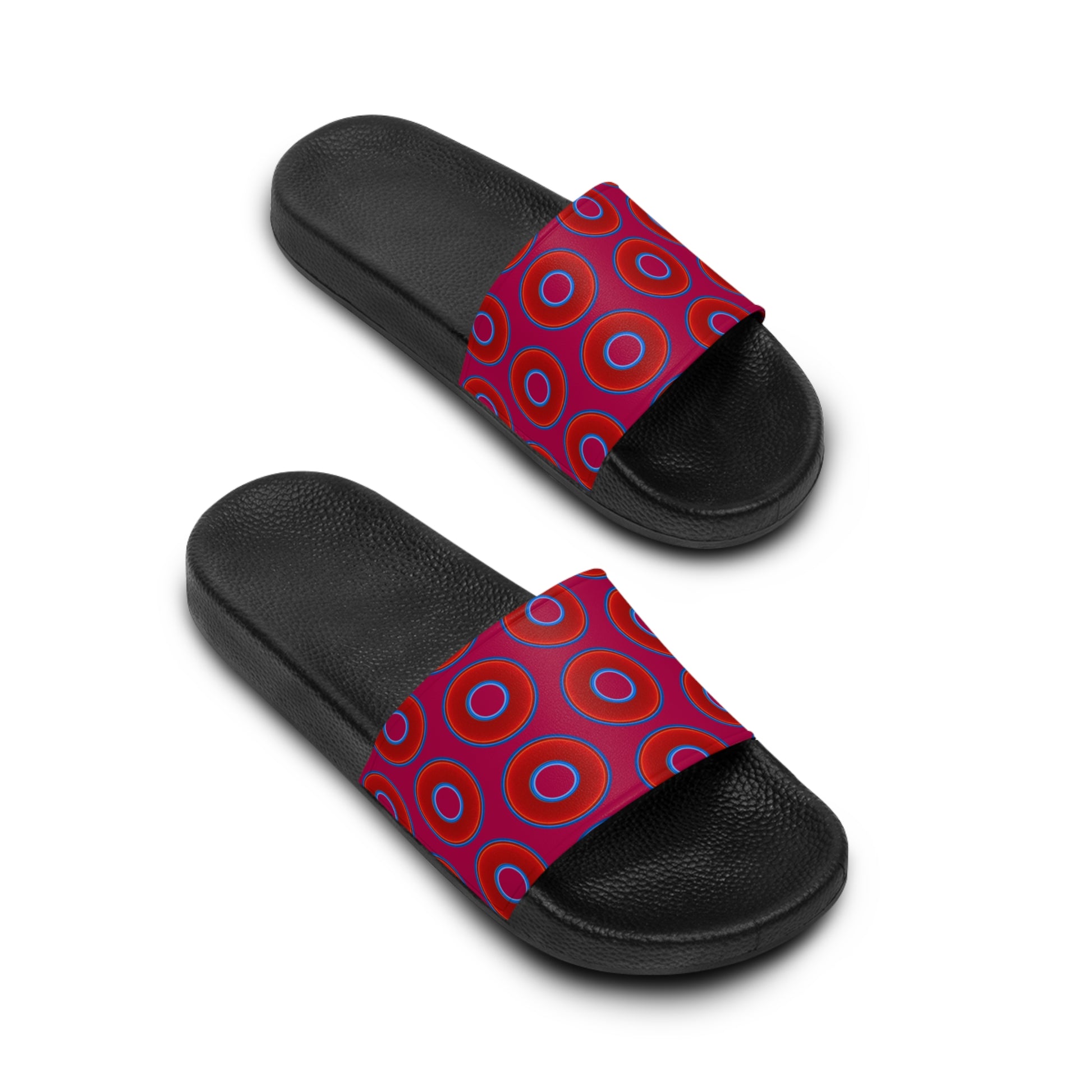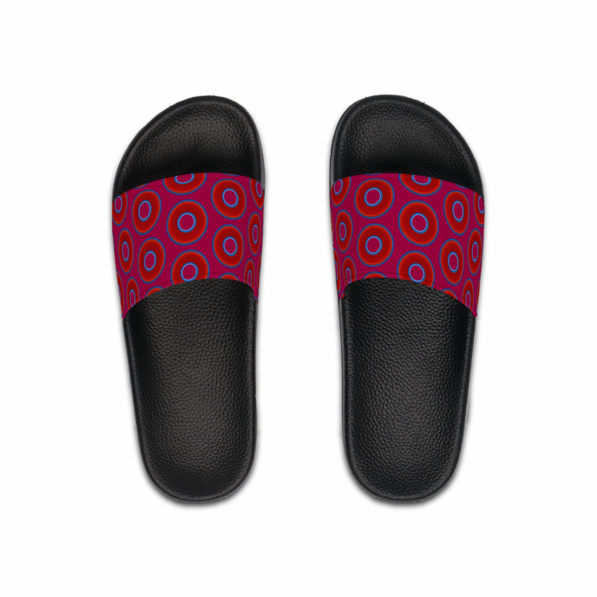 Men's Lumpy Sandals - slip-ons - red vivid donuts w/dark magenta background