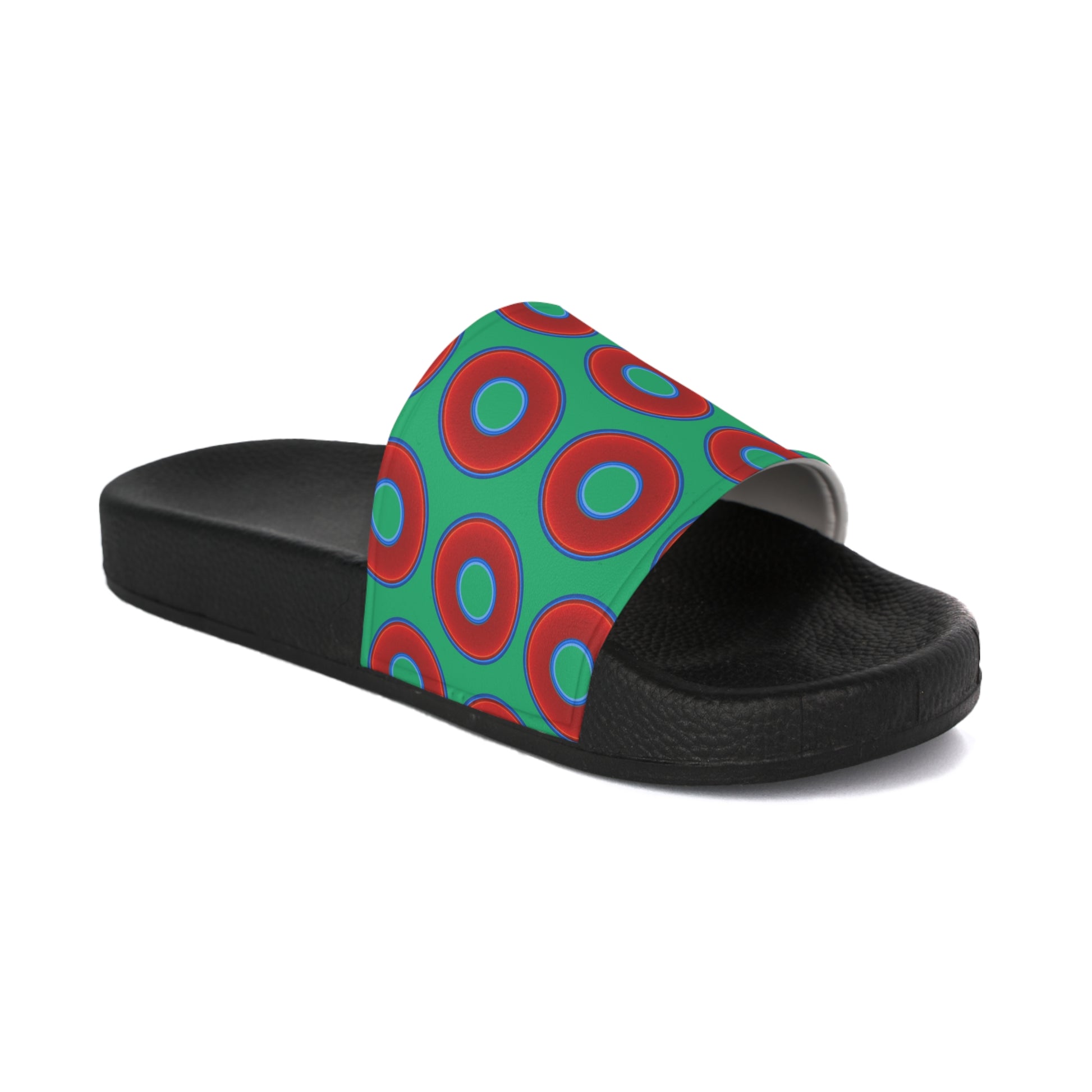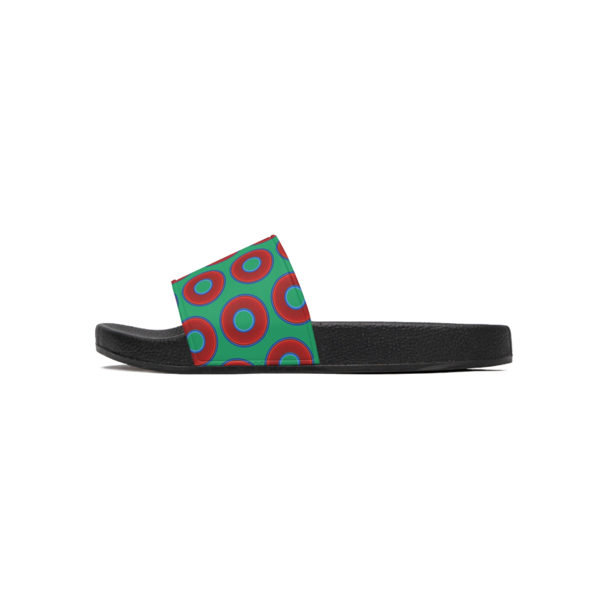 Men's Lumpy Sandals - slip-ons - red vivid donuts w/jade light green background