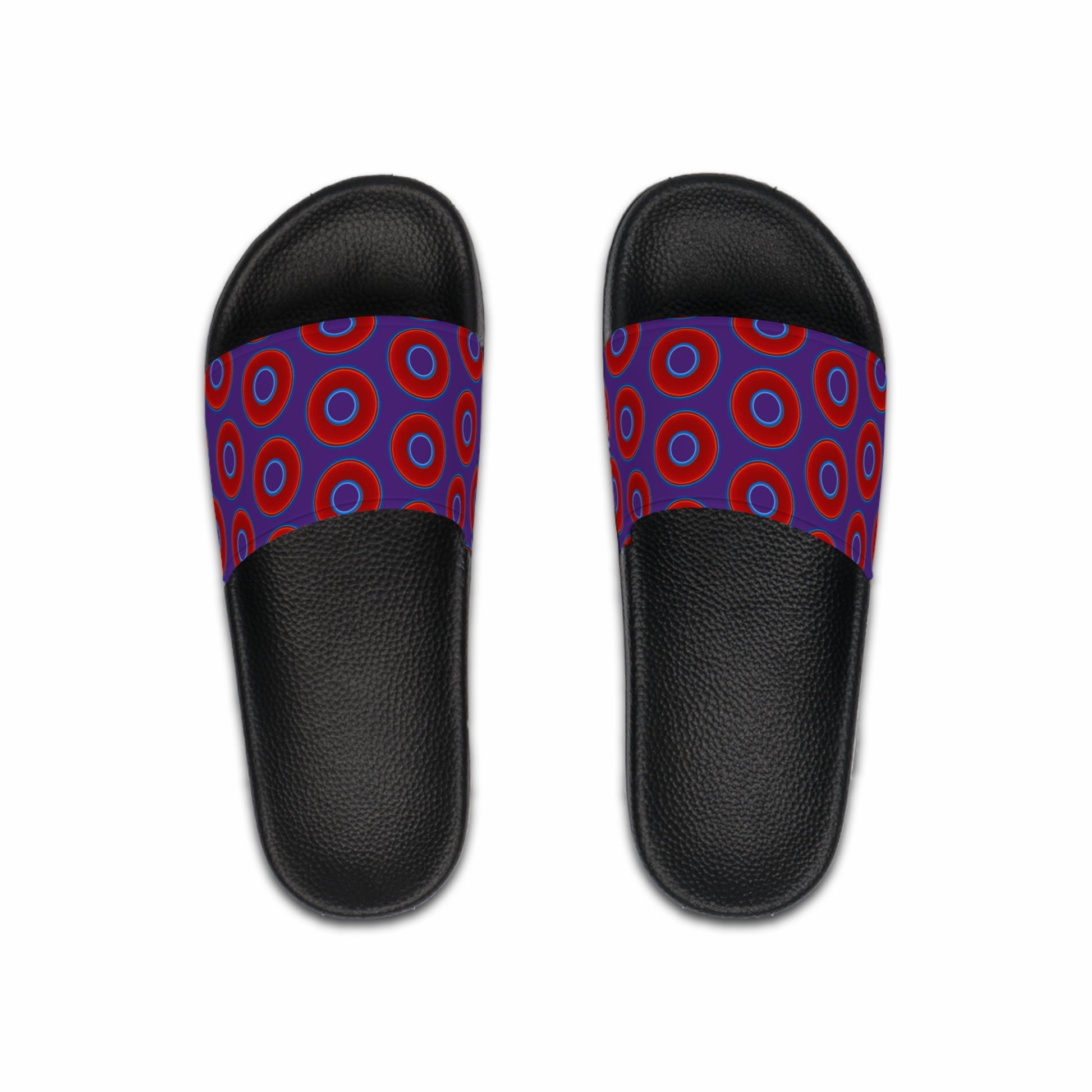 Men's Lumpy Sandals - slip-ons - red vivid donuts w/purple background