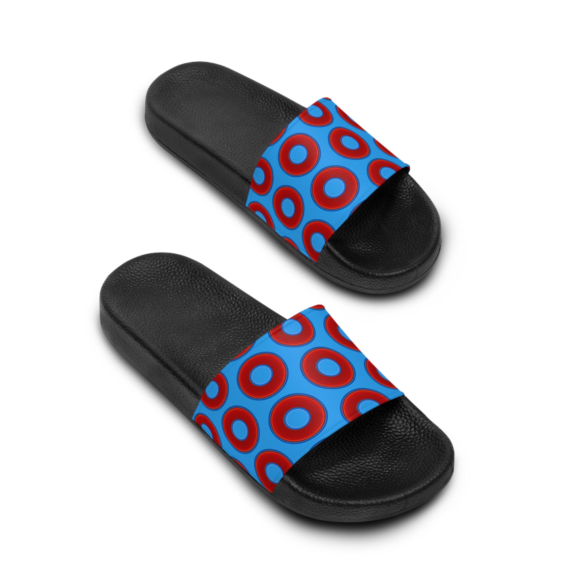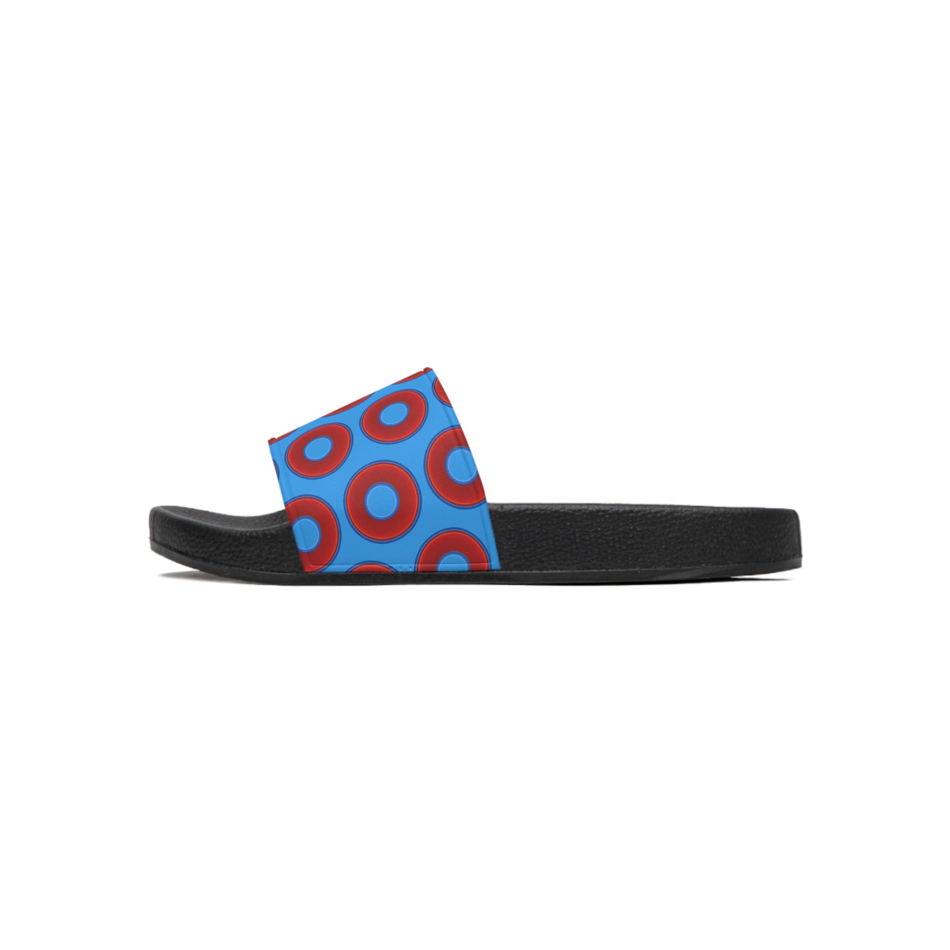 Men's Lumpy Sandals - slip-ons - red vivid donuts w/sky royal blue background