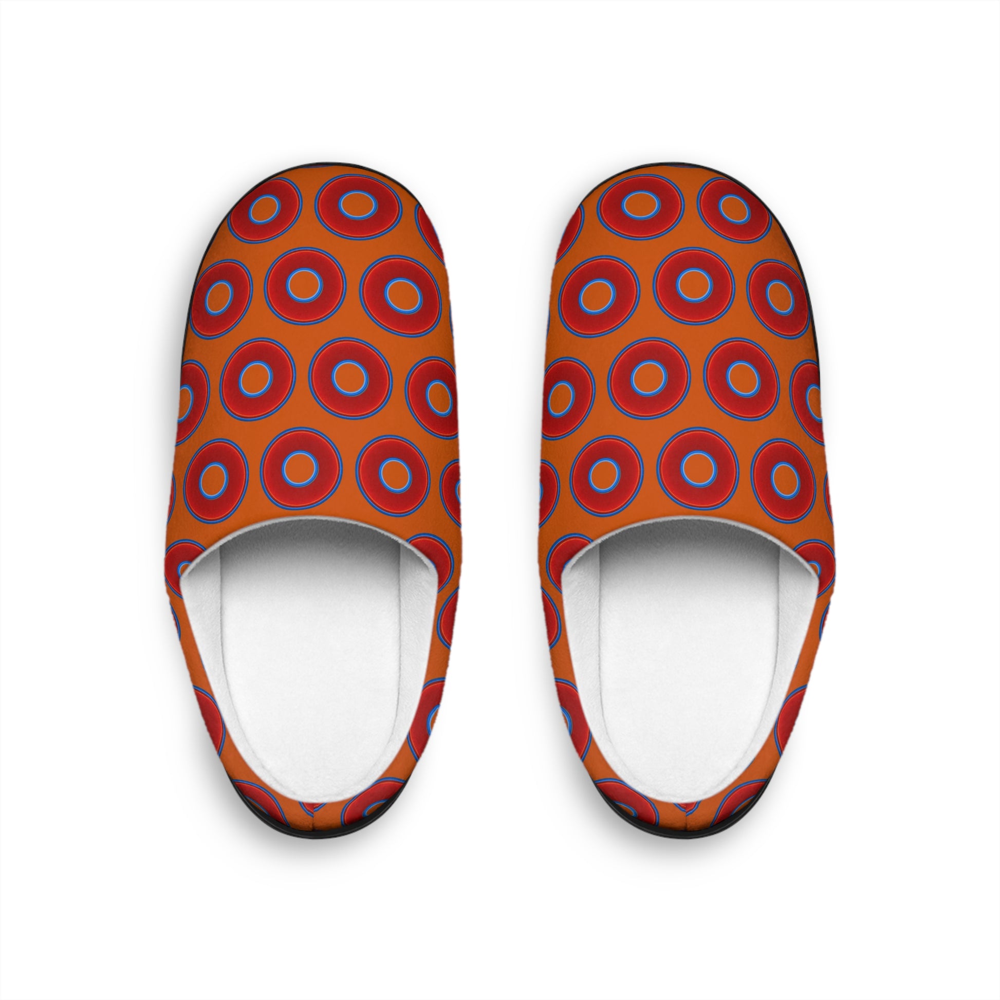 Men's Lumpy Slippers - red vivid donut print w/dark orange background