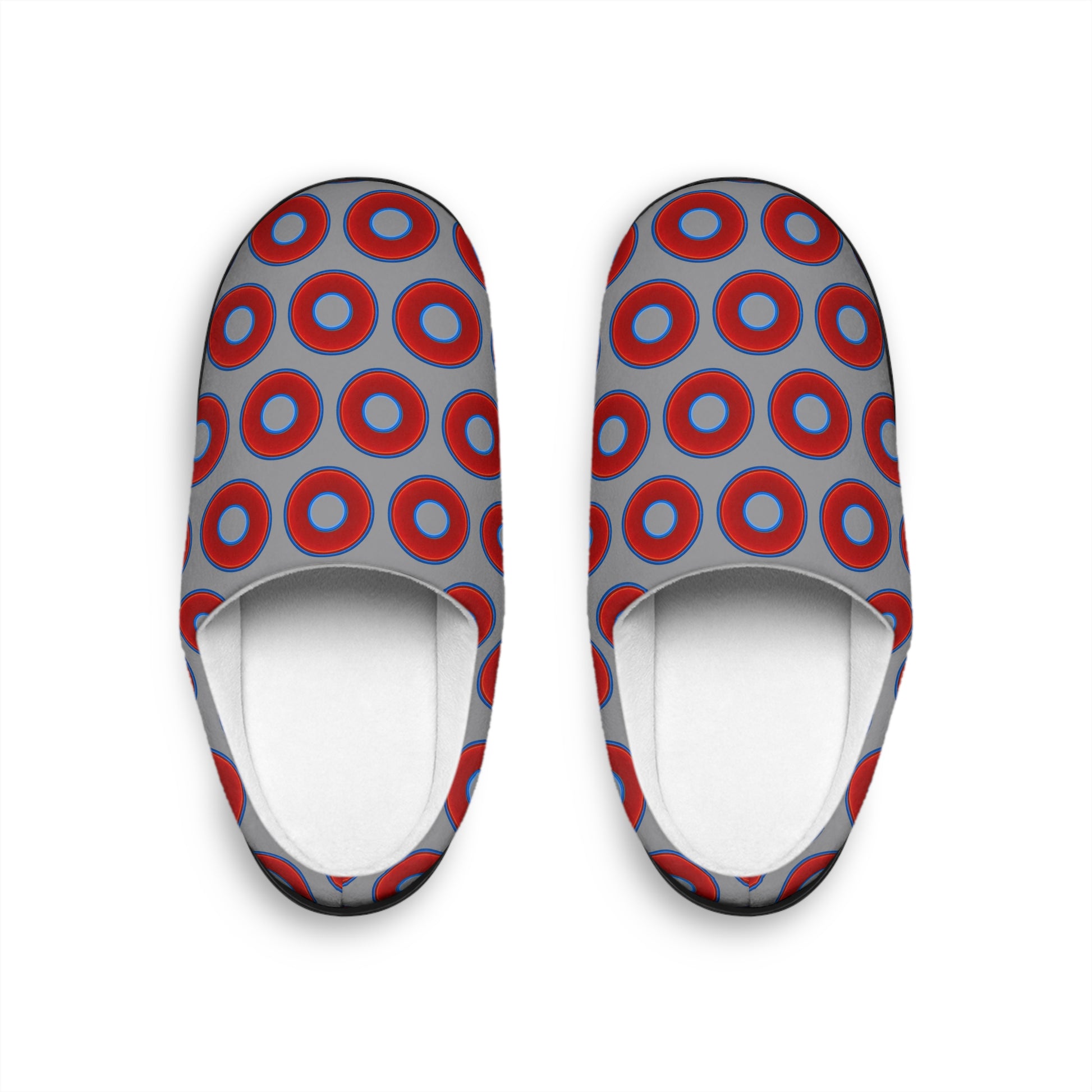 Men's Lumpy Slippers - red vivid donut print w/gray background