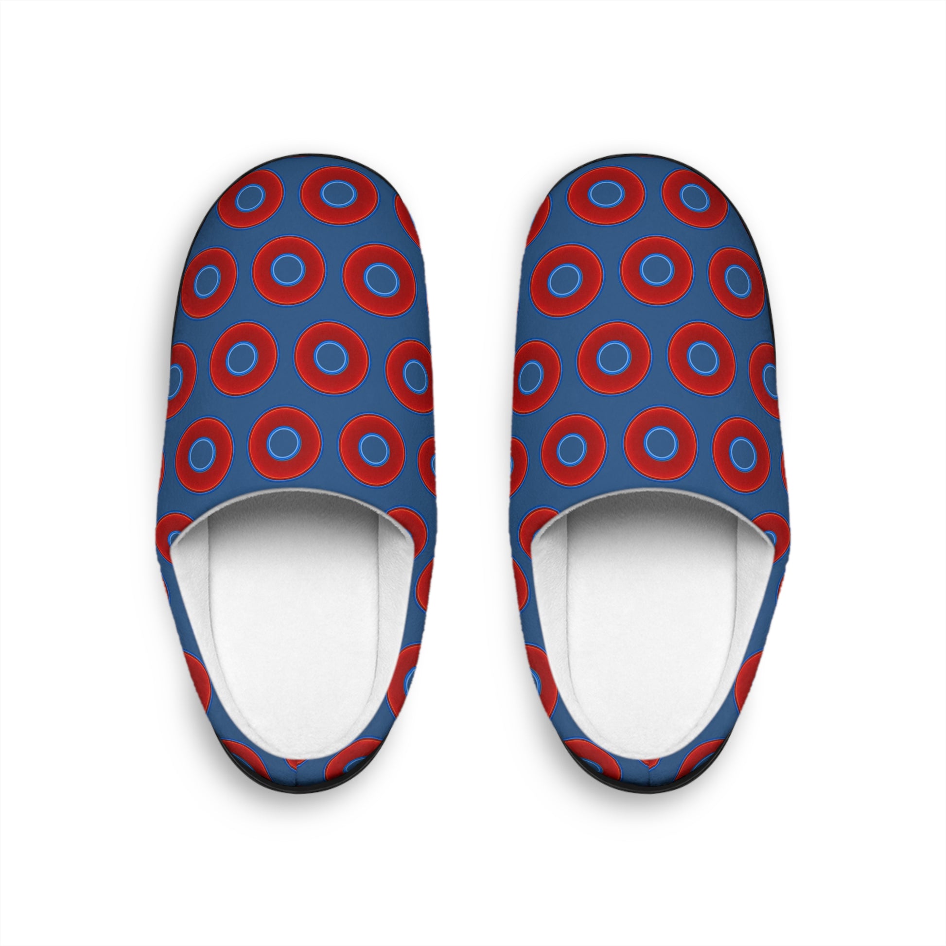 Men's Lumpy Slippers - red vivid donut print w/light navy blue background