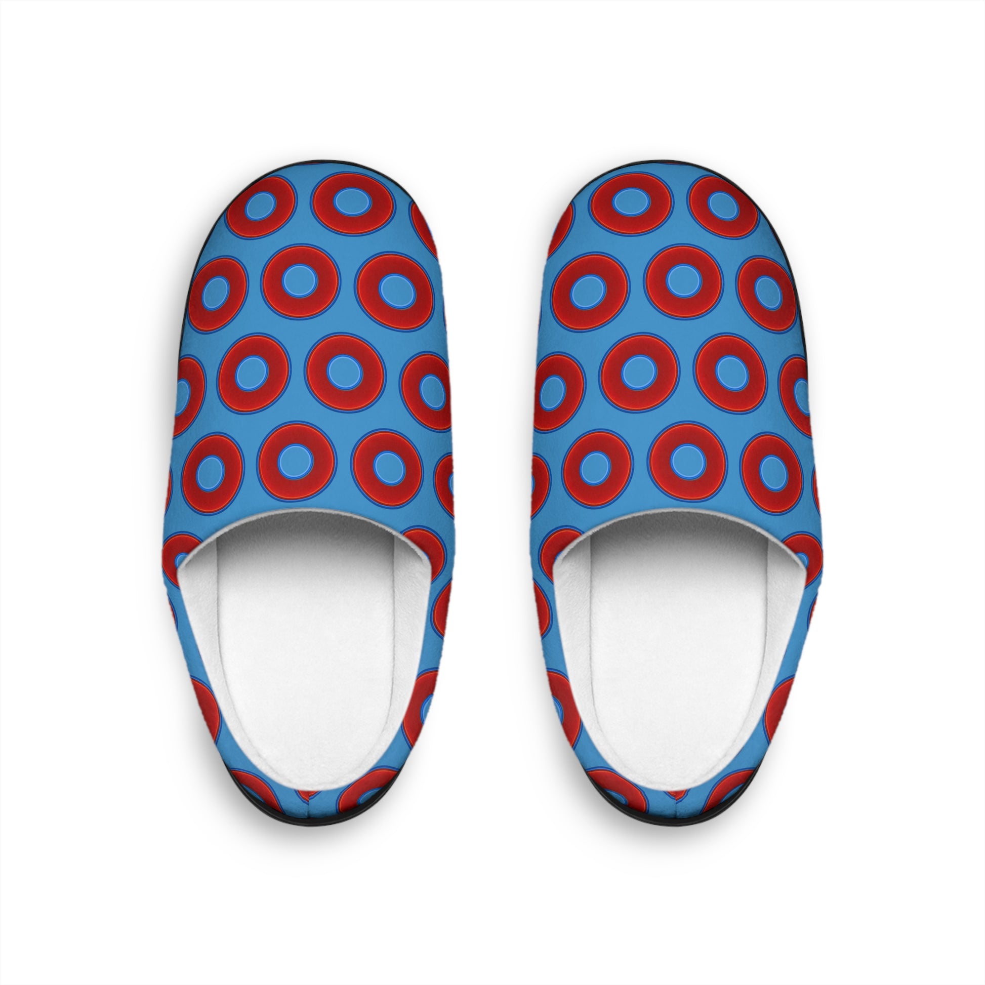 Men's Lumpy Slippers - red vivid donut print w/light steel blue background