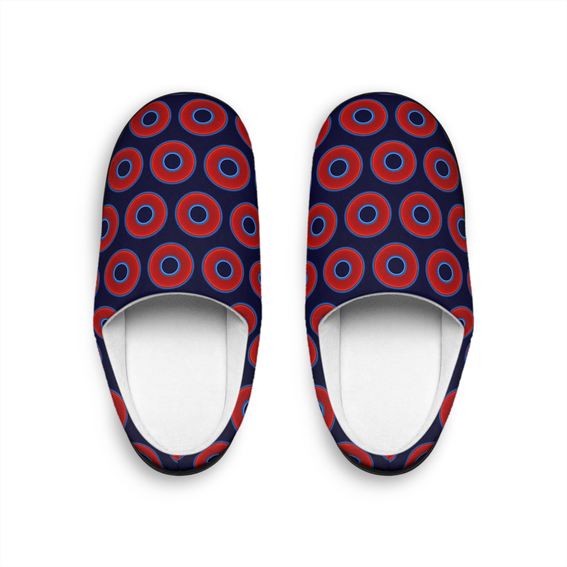 Men's Lumpy Slippers - red vivid donut print w/midnight blue background