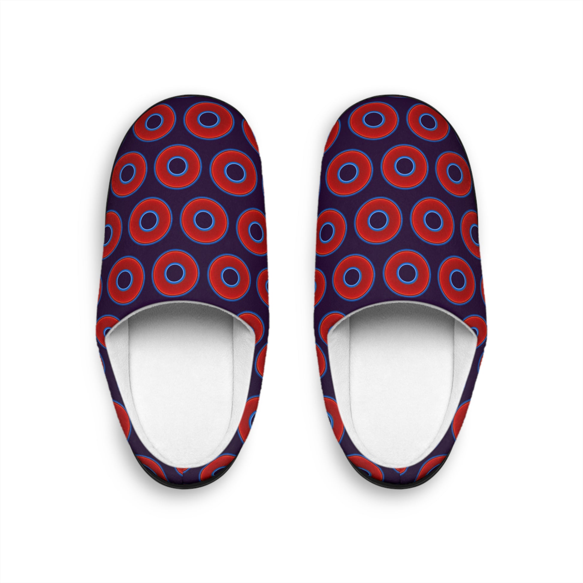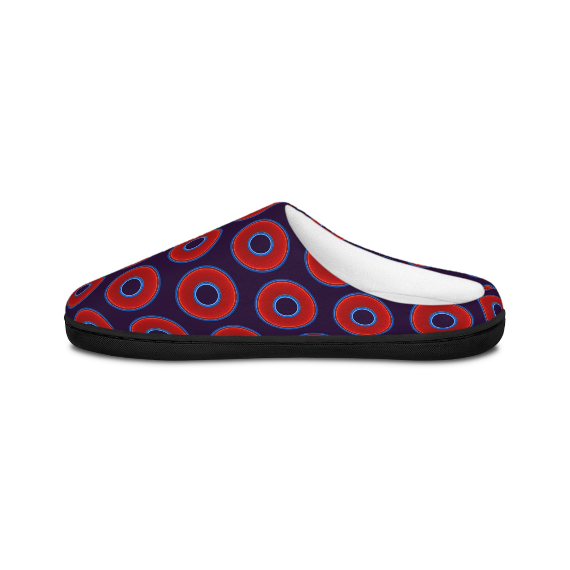 Men's Lumpy Slippers - red vivid donut print w/midnight purple background