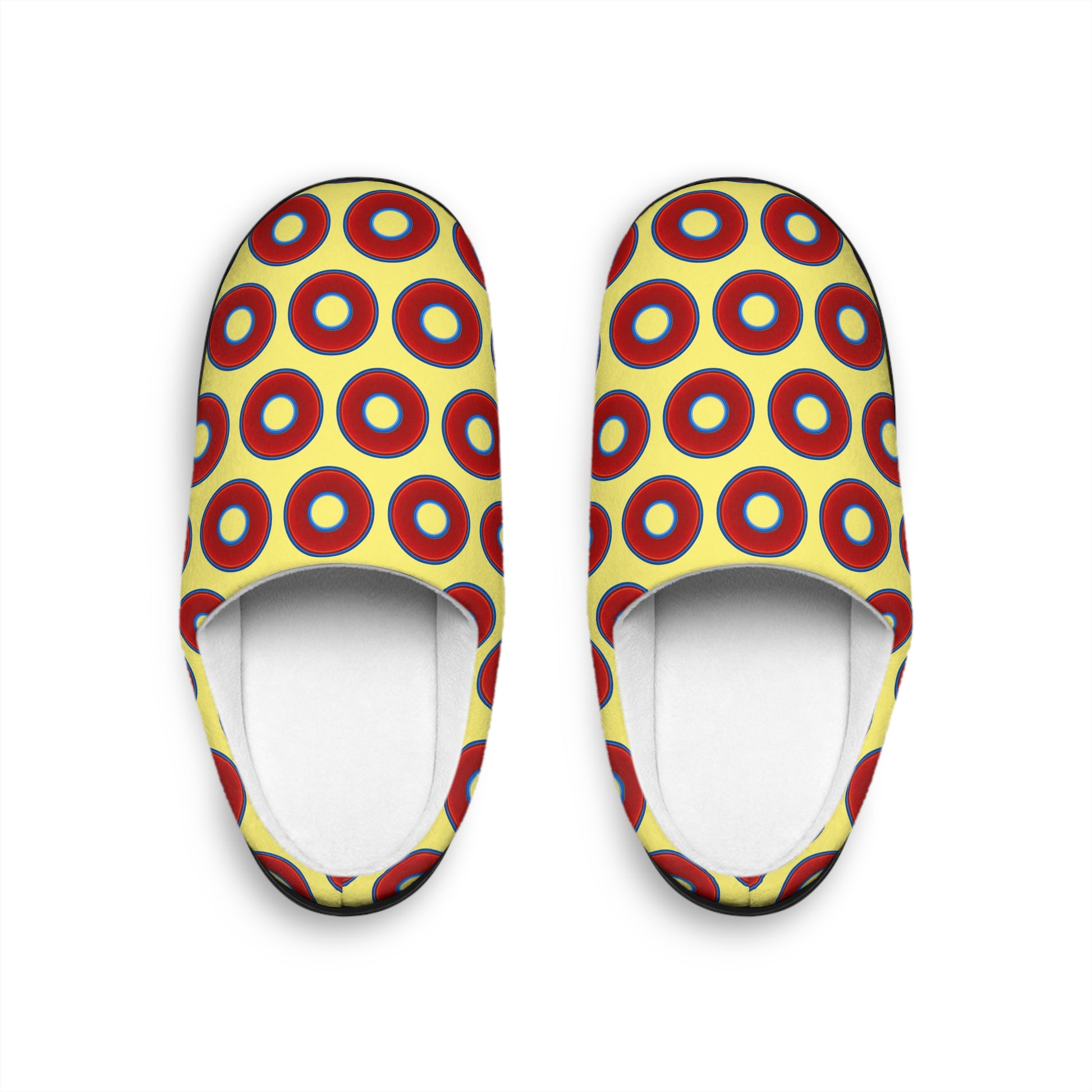 Men's Lumpy Slippers - red vivid donut print w/yellow background