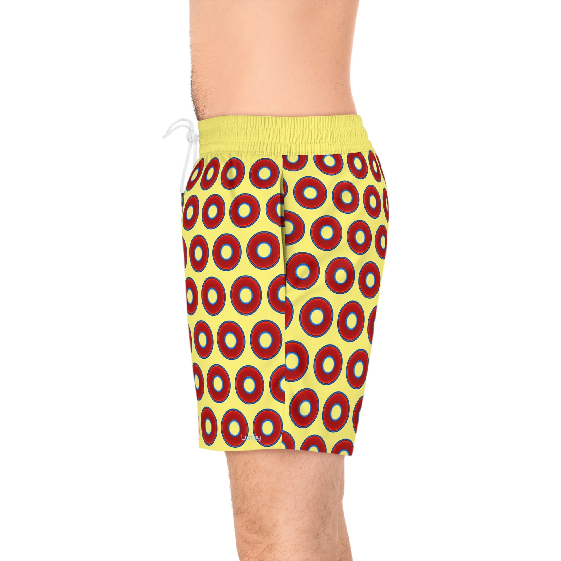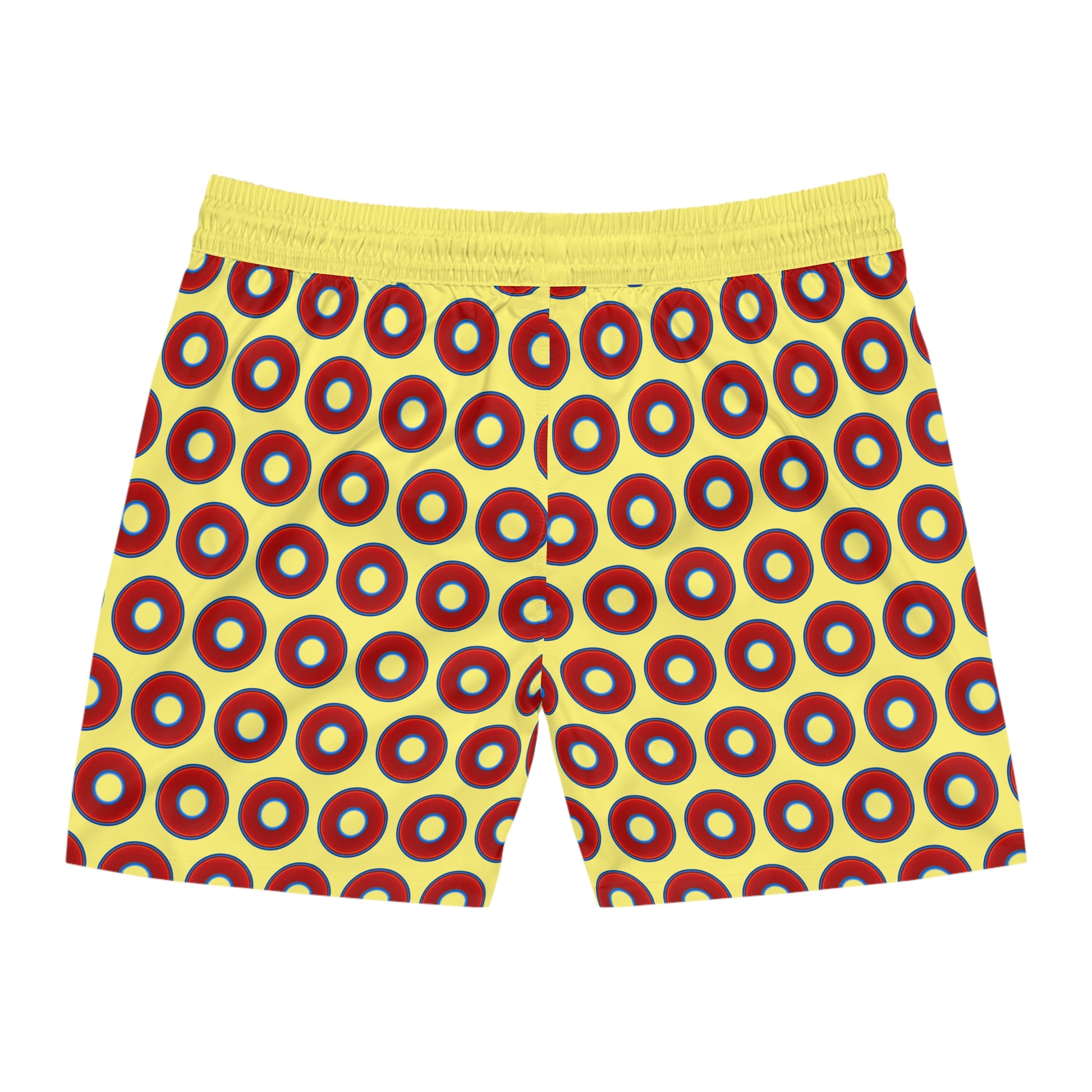 Men's Lumpy Swim Trunks - vivid red donut print w/yellow background