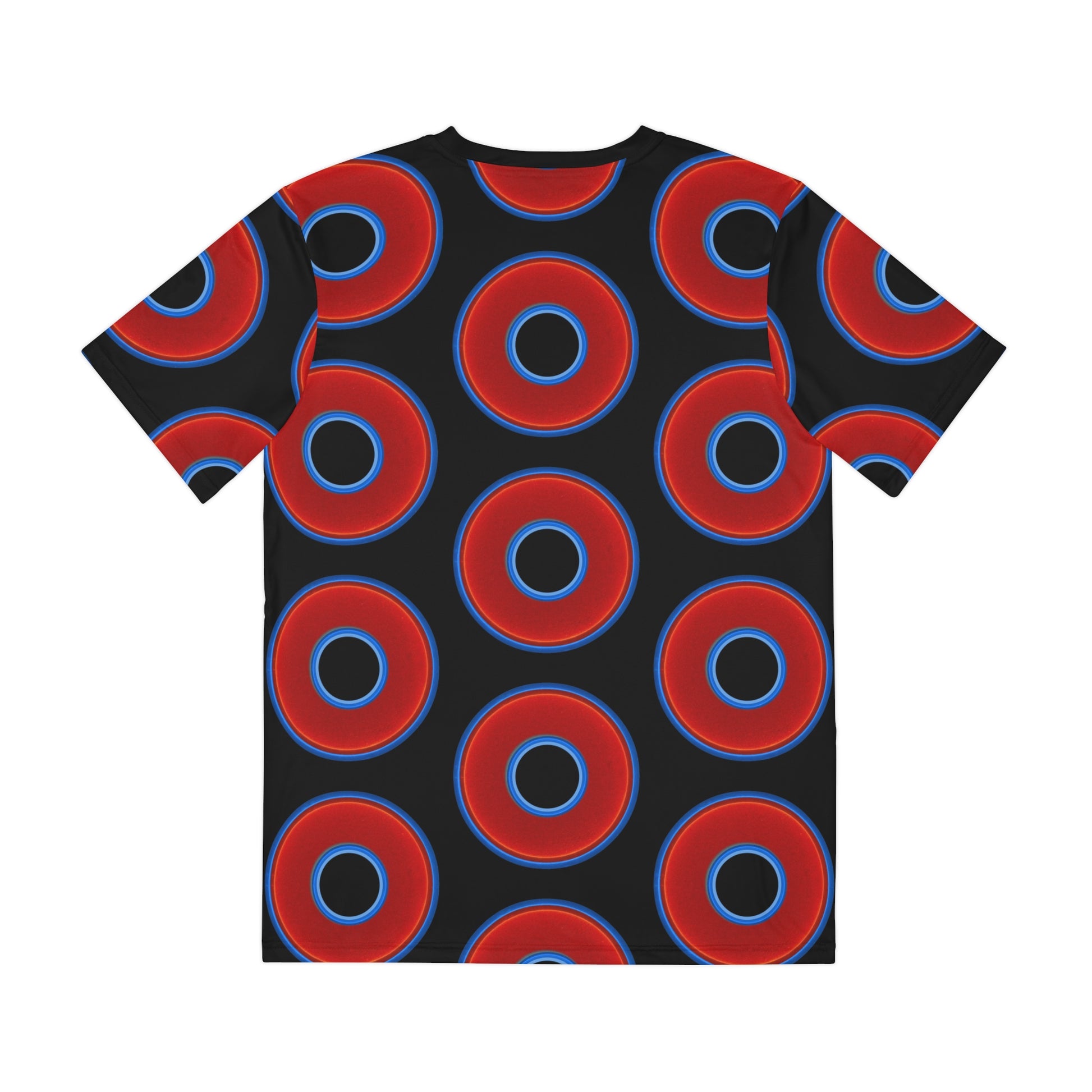 Multi-Beastie Giant Donut AOP Polyester Tee - red vivid donut print w/black background