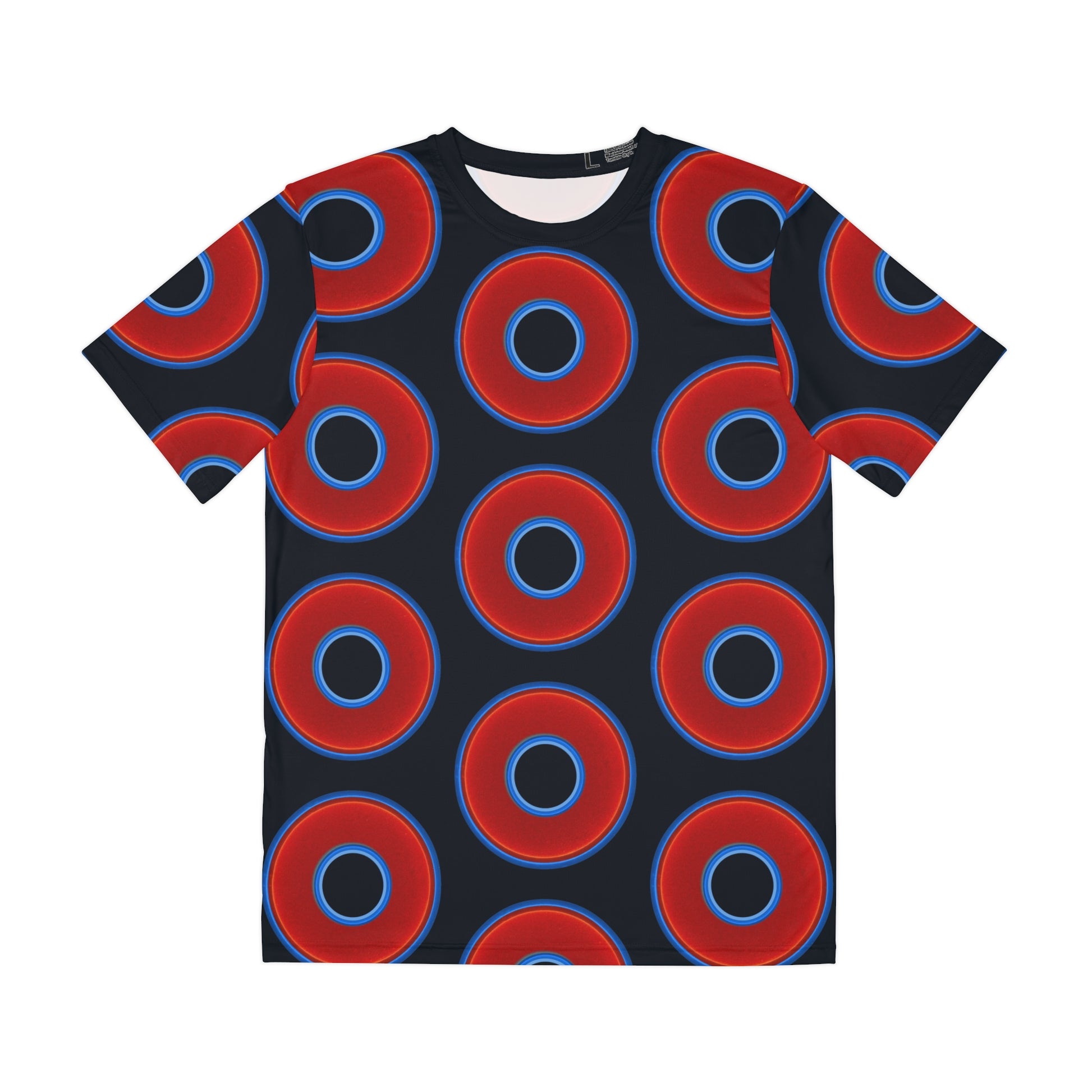 Multi-Beastie Giant Donut AOP Polyester Tee - red vivid donut print w/blue charcoal background