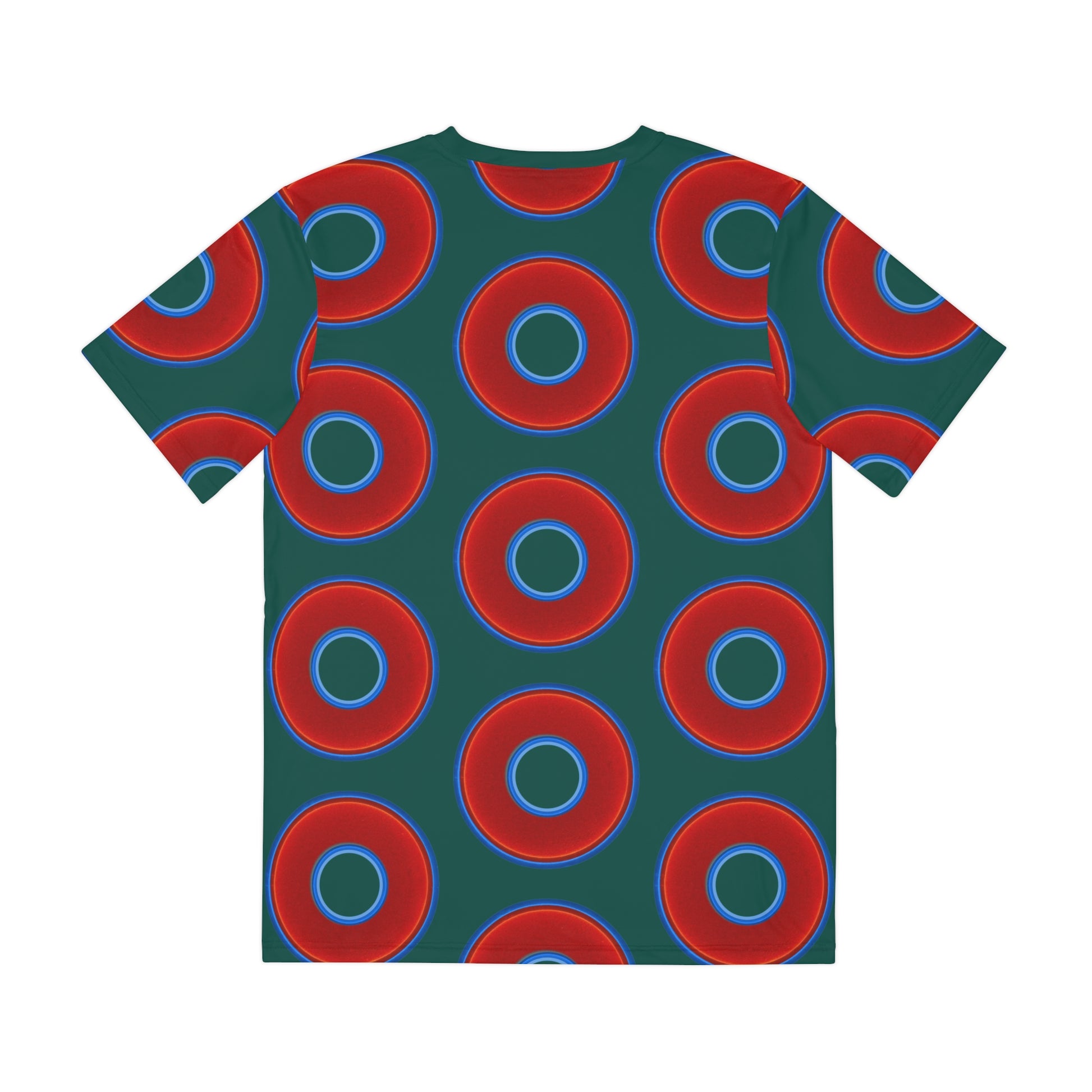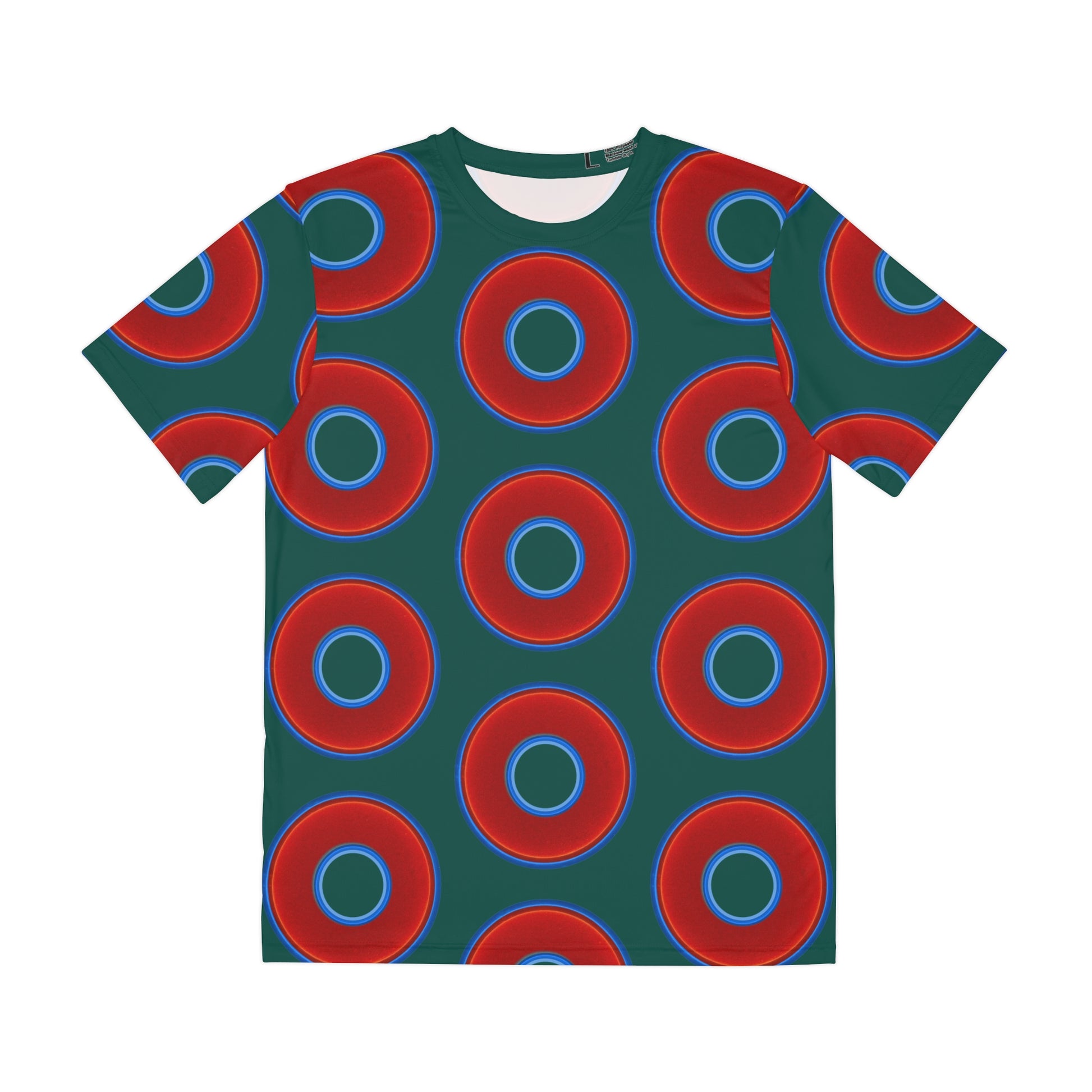Multi-Beastie Giant Donut AOP Polyester Tee - red vivid donut print w/dark Fenway green background
