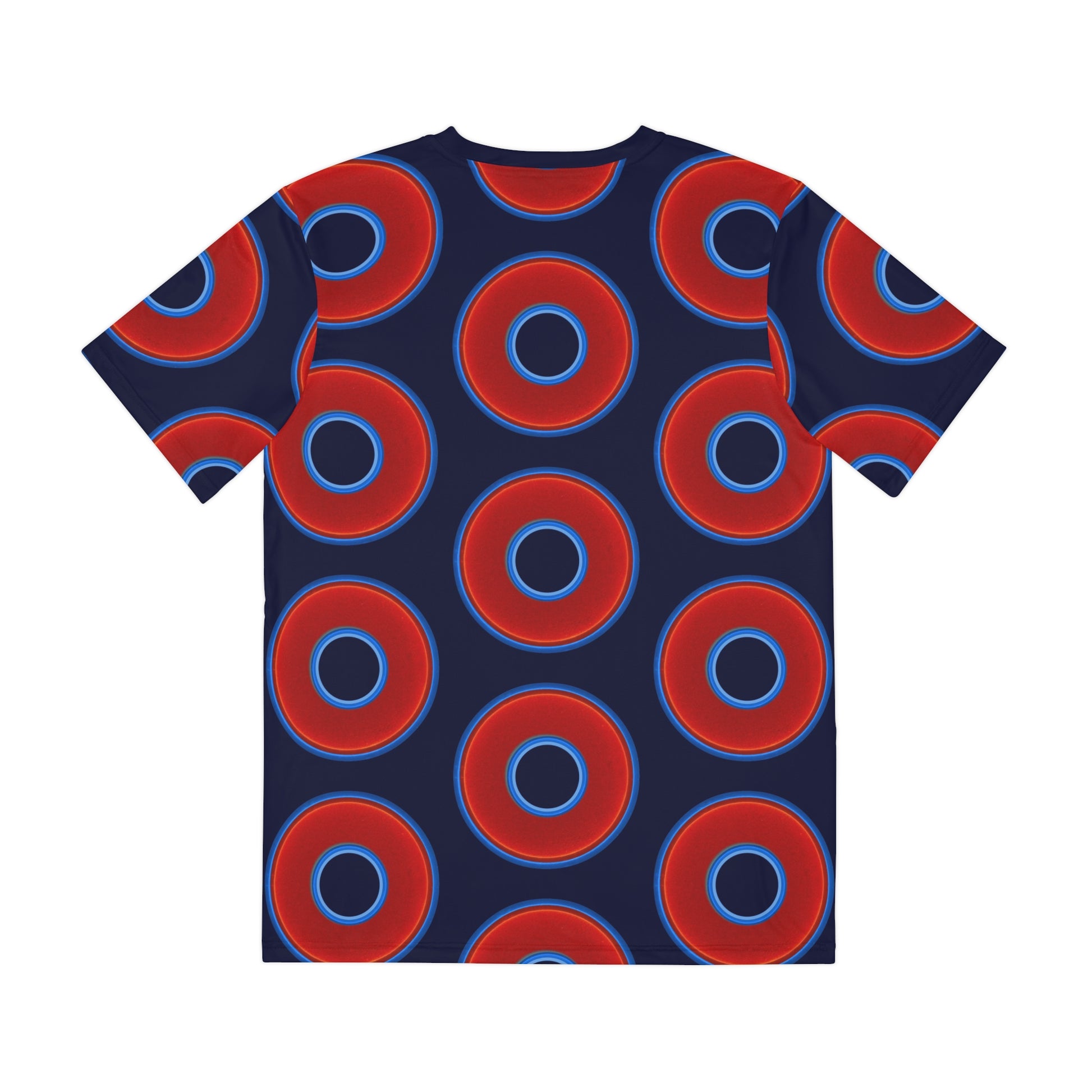 Multi-Beastie Giant Donut AOP Polyester Tee - red vivid donut print w/dark navy blue background