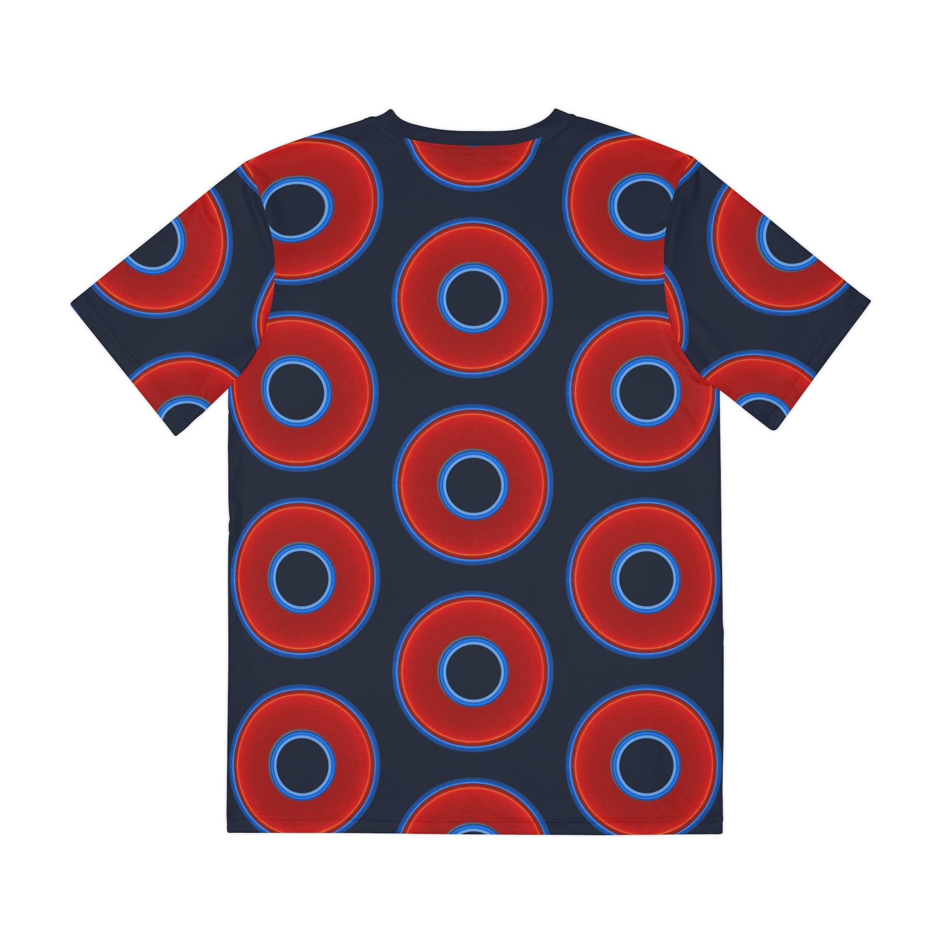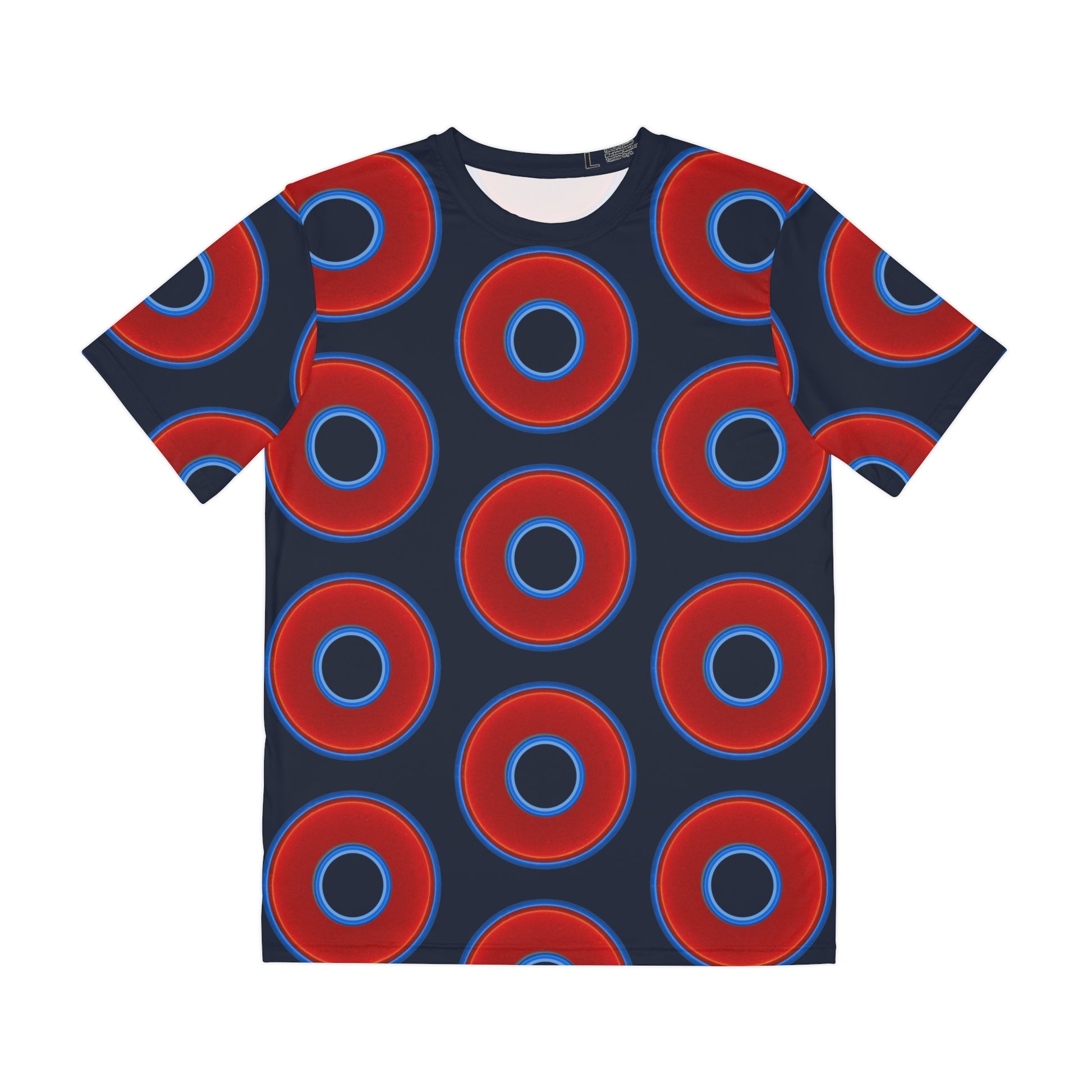 Multi-Beastie Giant Donut AOP Polyester Tee - red vivid donut print w/dark teal blue elite background