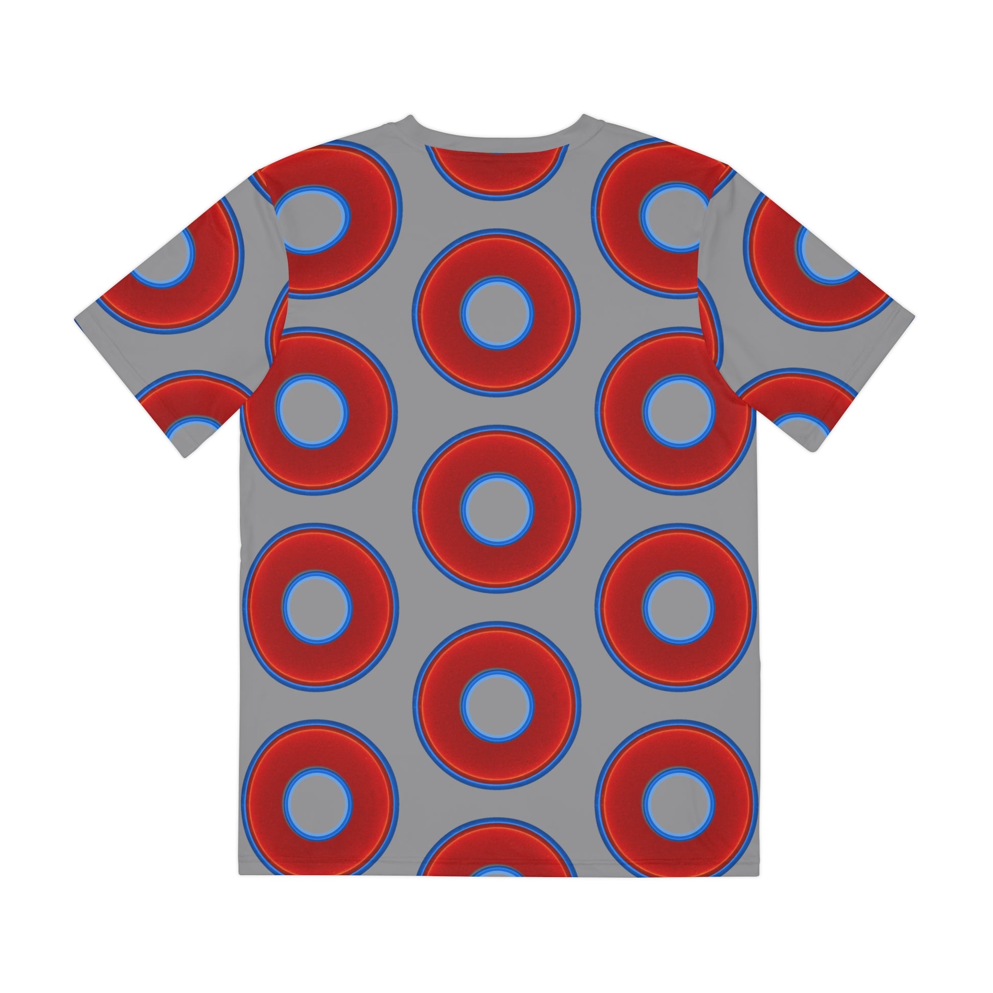 Multi-Beastie Giant Donut AOP Polyester Tee - red vivid donut print w/gray background