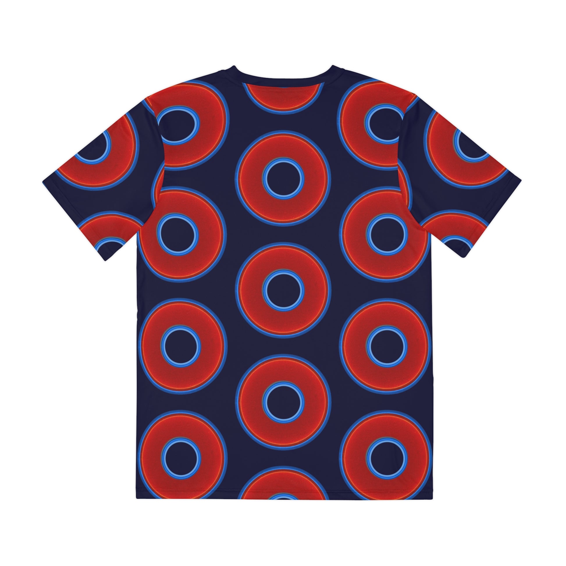 Multi-Beastie Giant Donut AOP Polyester Tee - red vivid donut print w/midnight blue background
