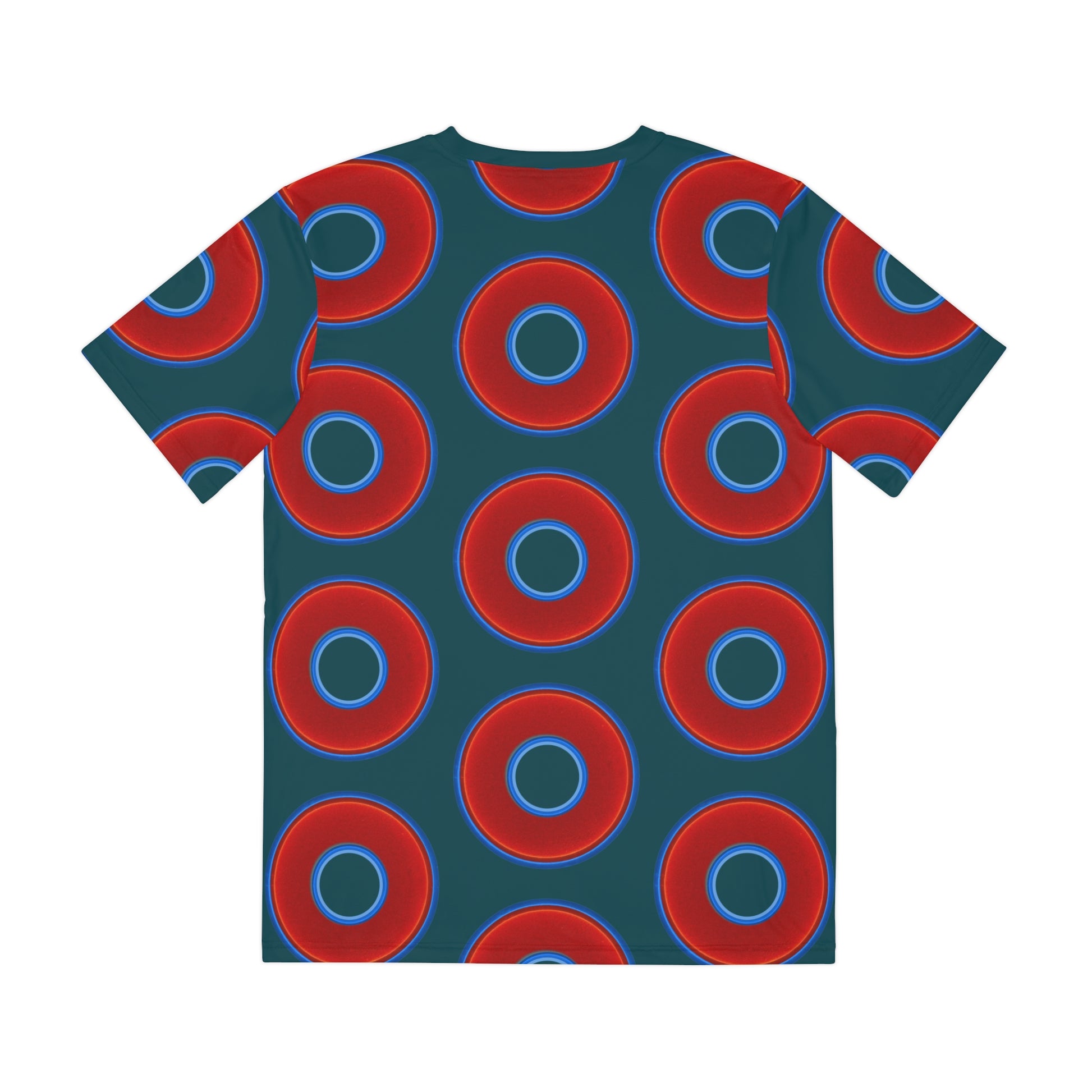 Multi-Beastie Giant Donut AOP Polyester Tee - red vivid donut print w/midnight teal green background