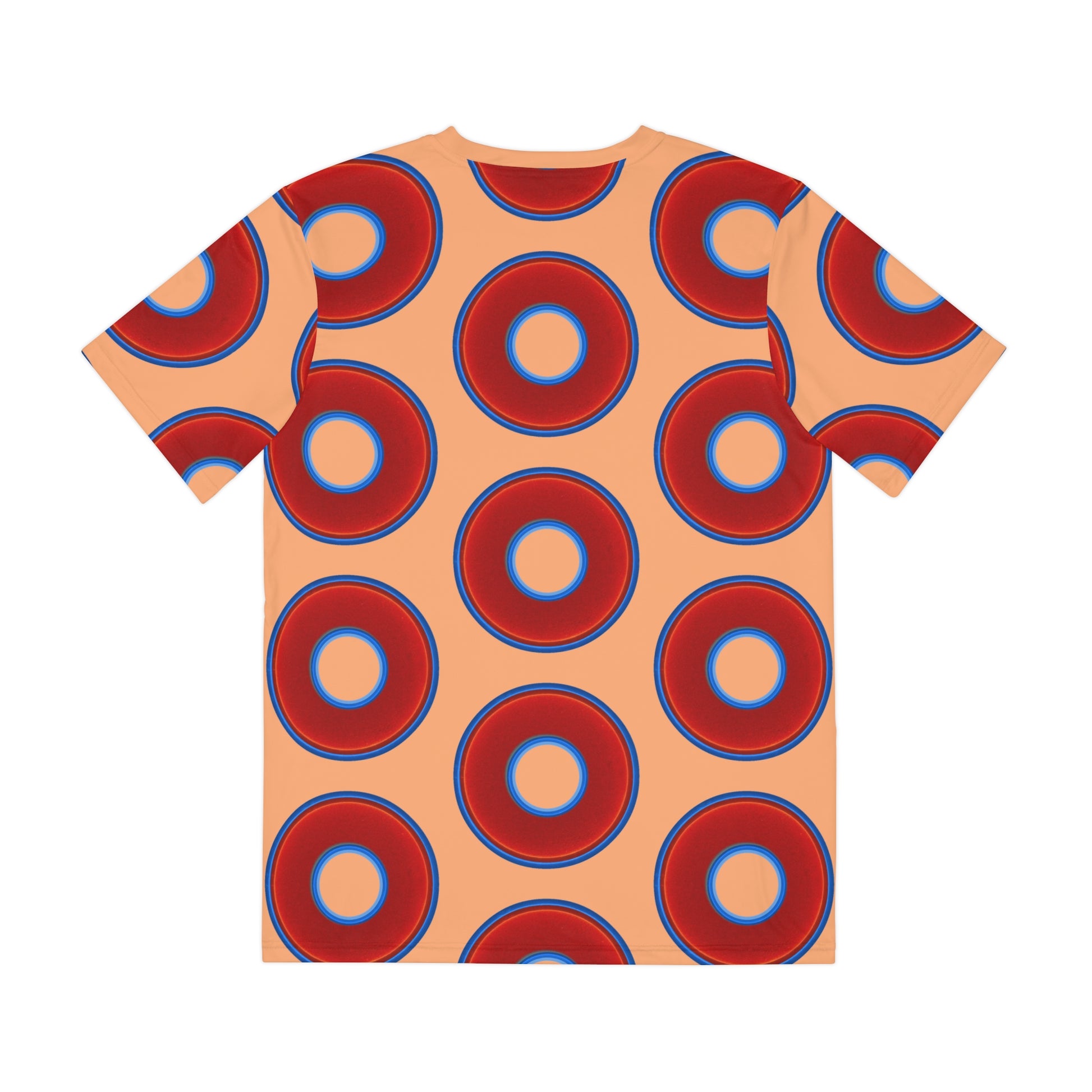 Multi-Beastie Giant Donut AOP Polyester Tee - red vivid donut print w/peach green background