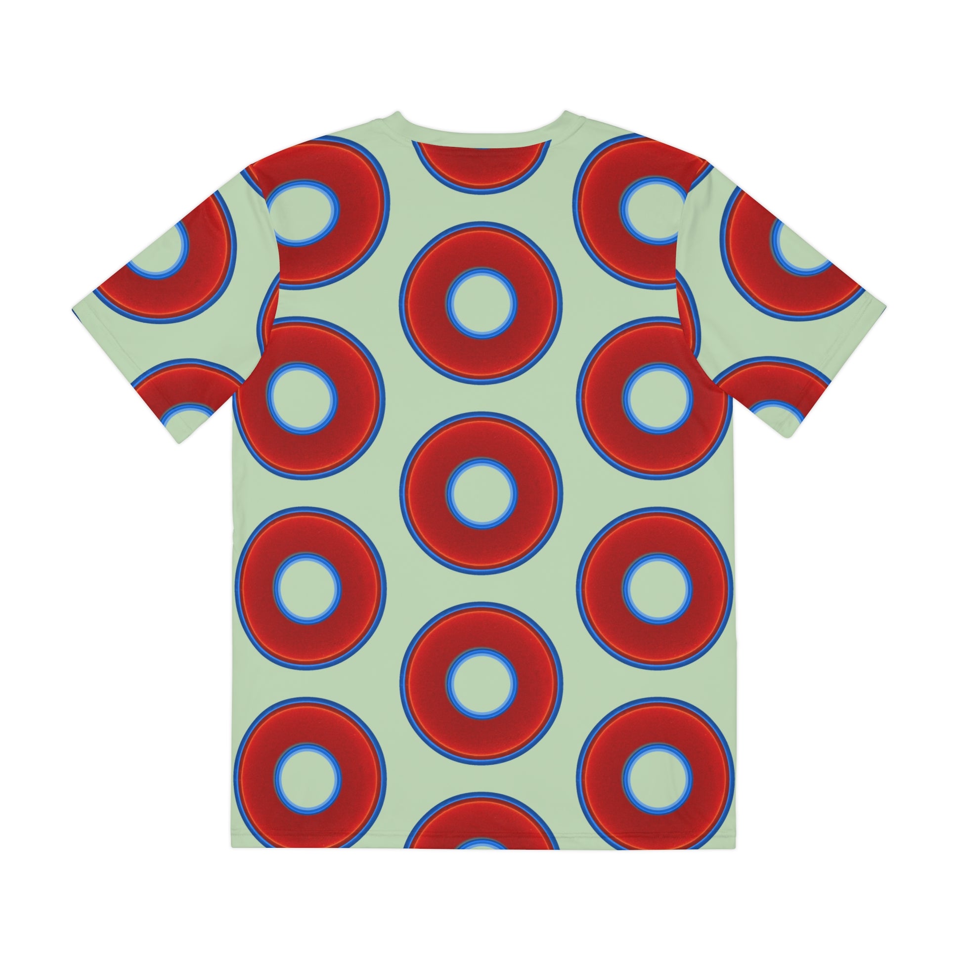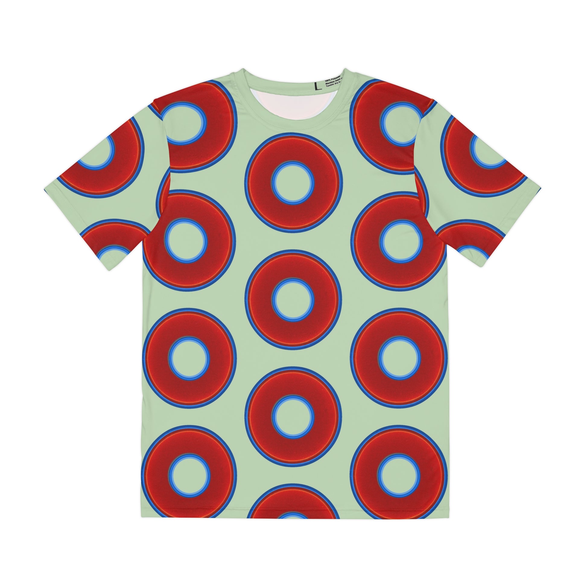 Multi-Beastie Giant Donut AOP Polyester Tee - red vivid donut print w/seafoam background