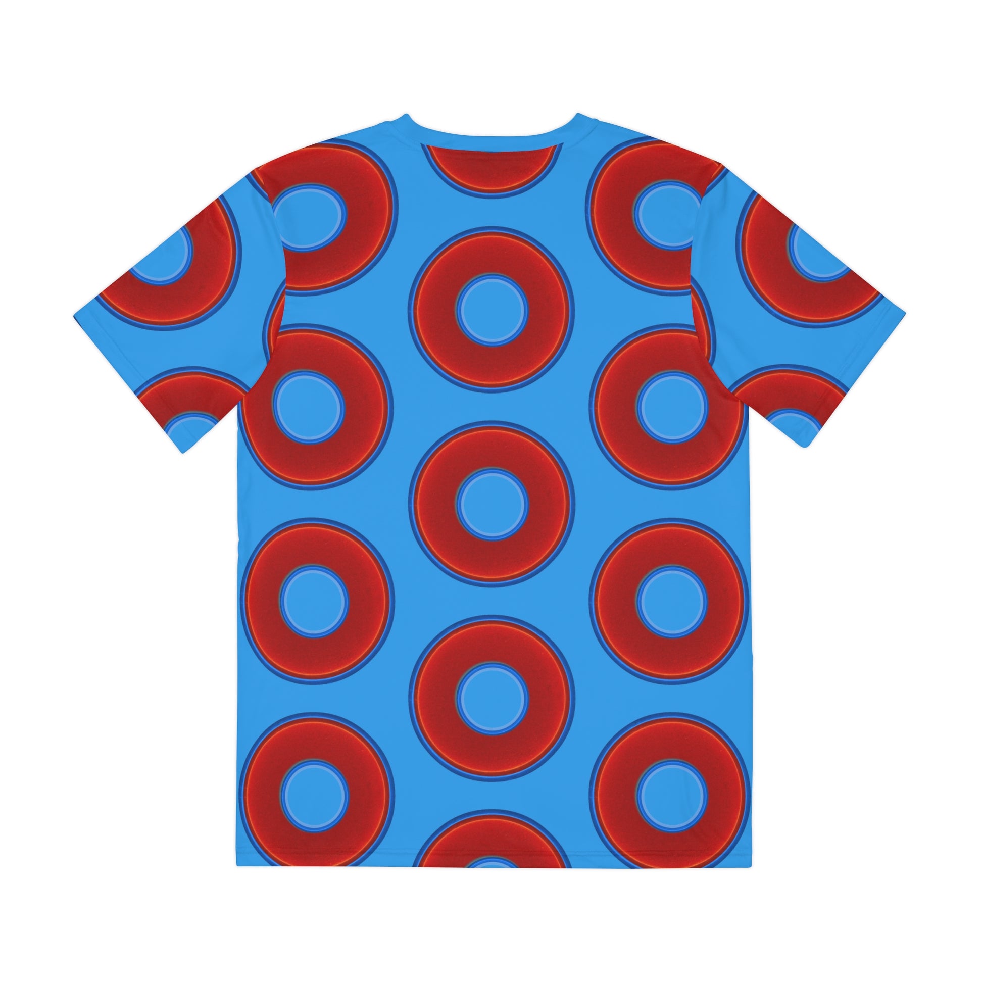 Multi-Beastie Giant Donut AOP Polyester Tee - red vivid donut print w/sky royal blue background