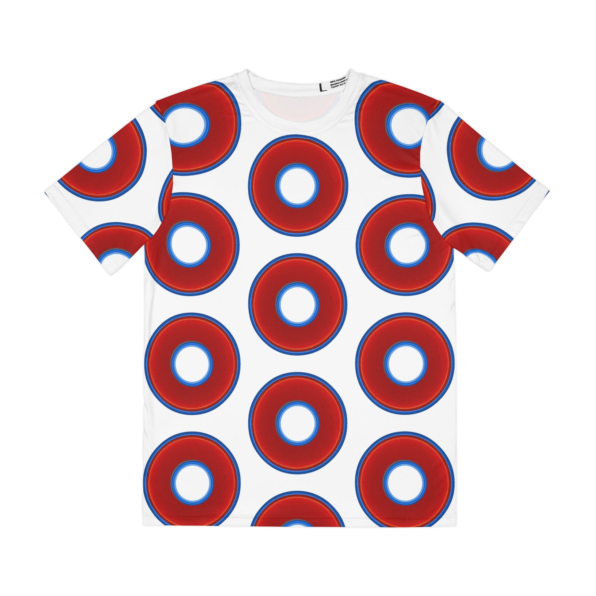 Multi-Beastie Giant Donut AOP Polyester Tee - red vivid donut print w/white background
