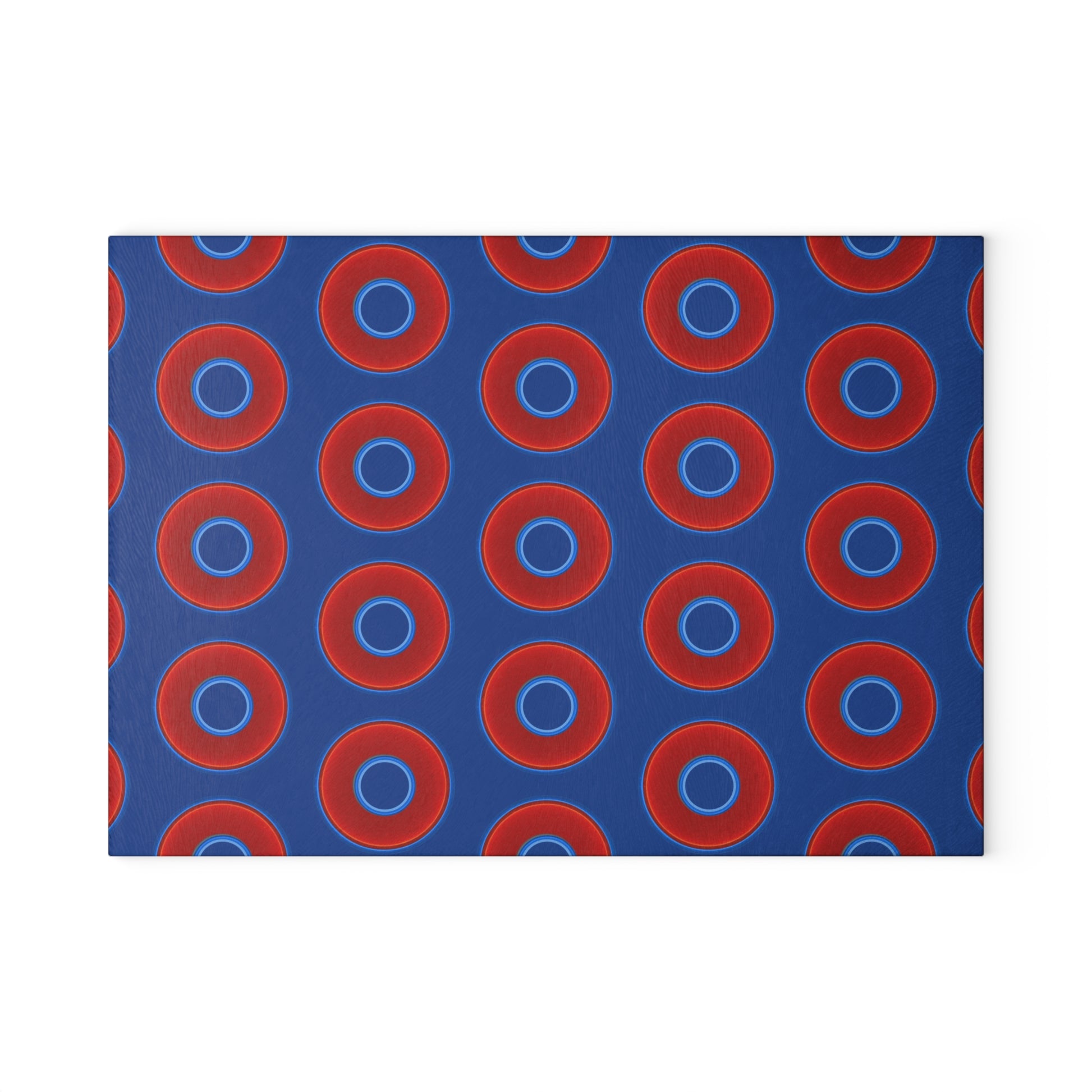 My Friend's Cutting Board - vivid red donuts w/dark blue background