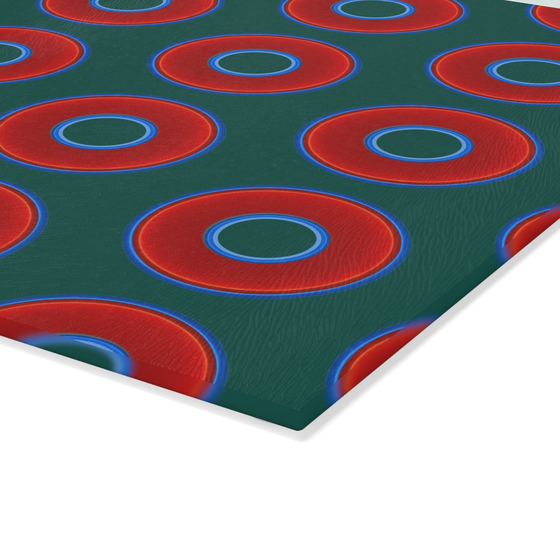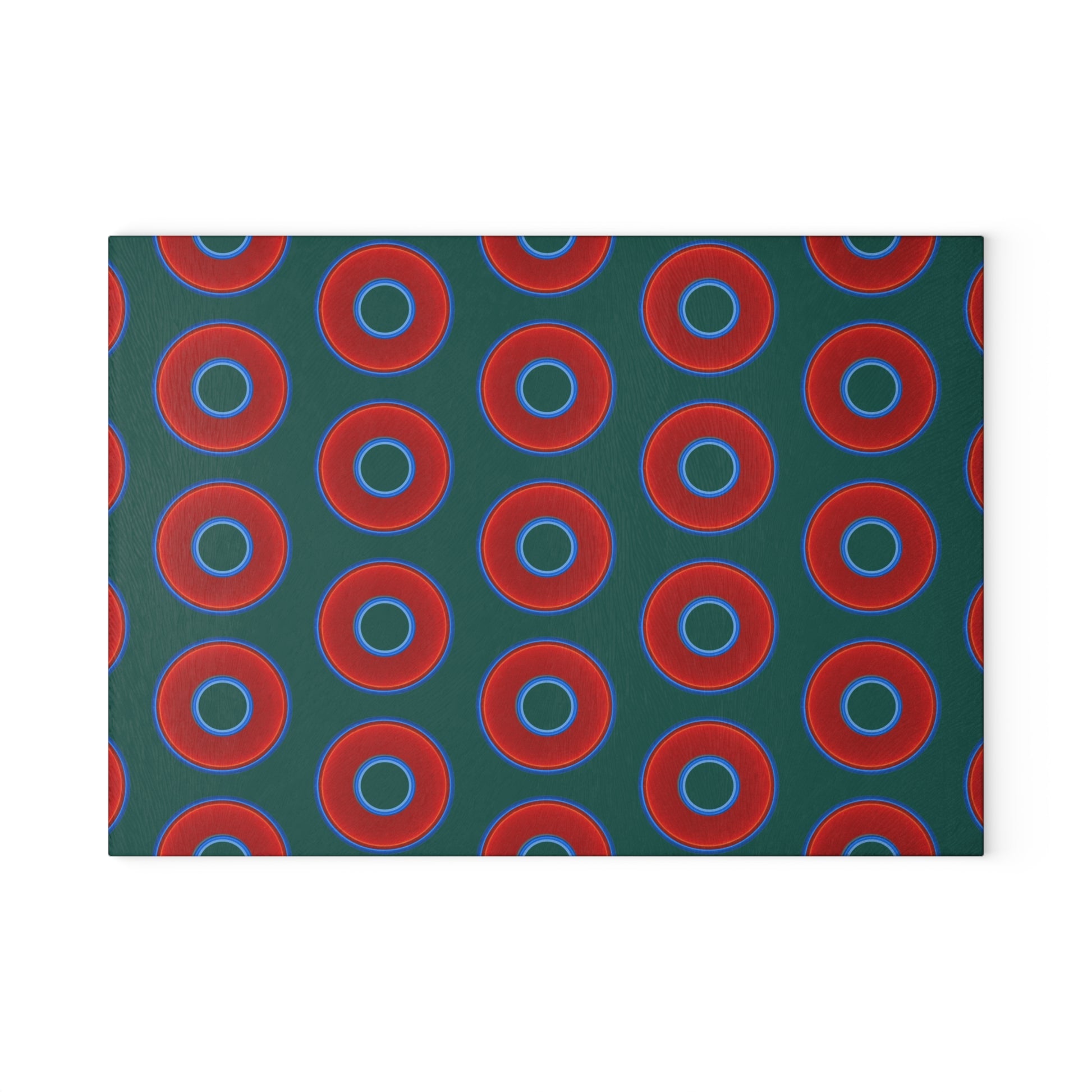 My Friend's Cutting Board - vivid red donuts w/dark Fenway green background