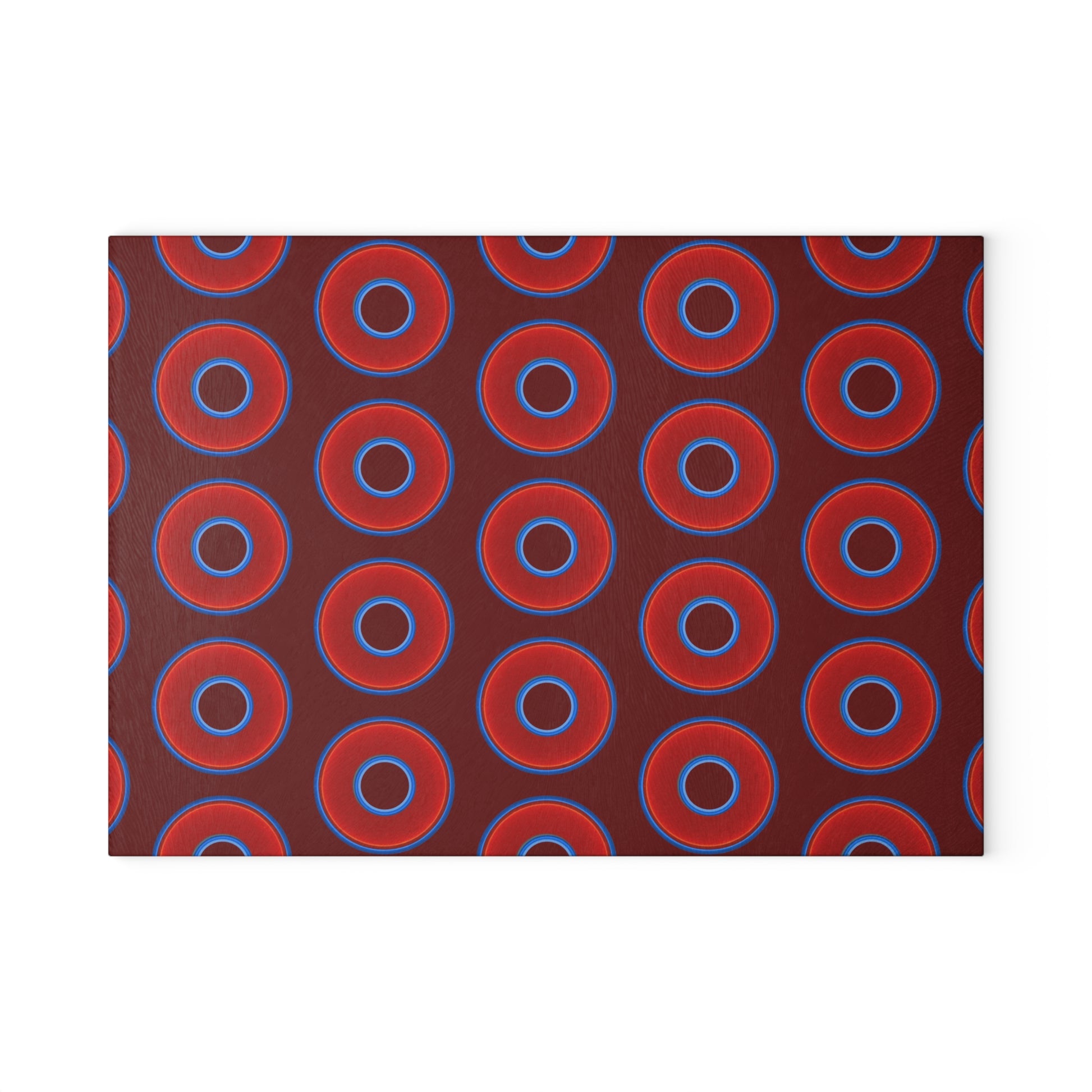 My Friend's Cutting Board - vivid red donuts w/dark red background