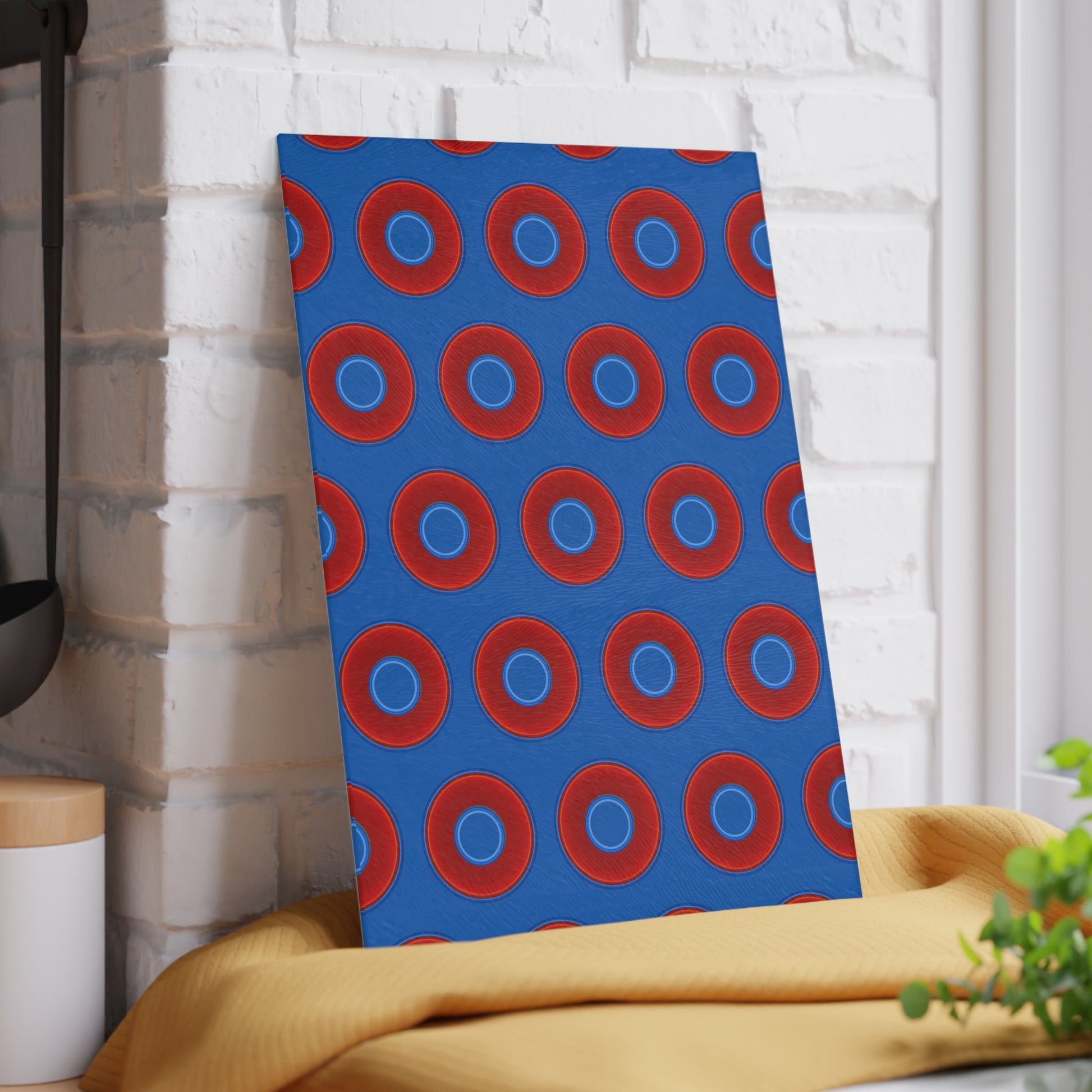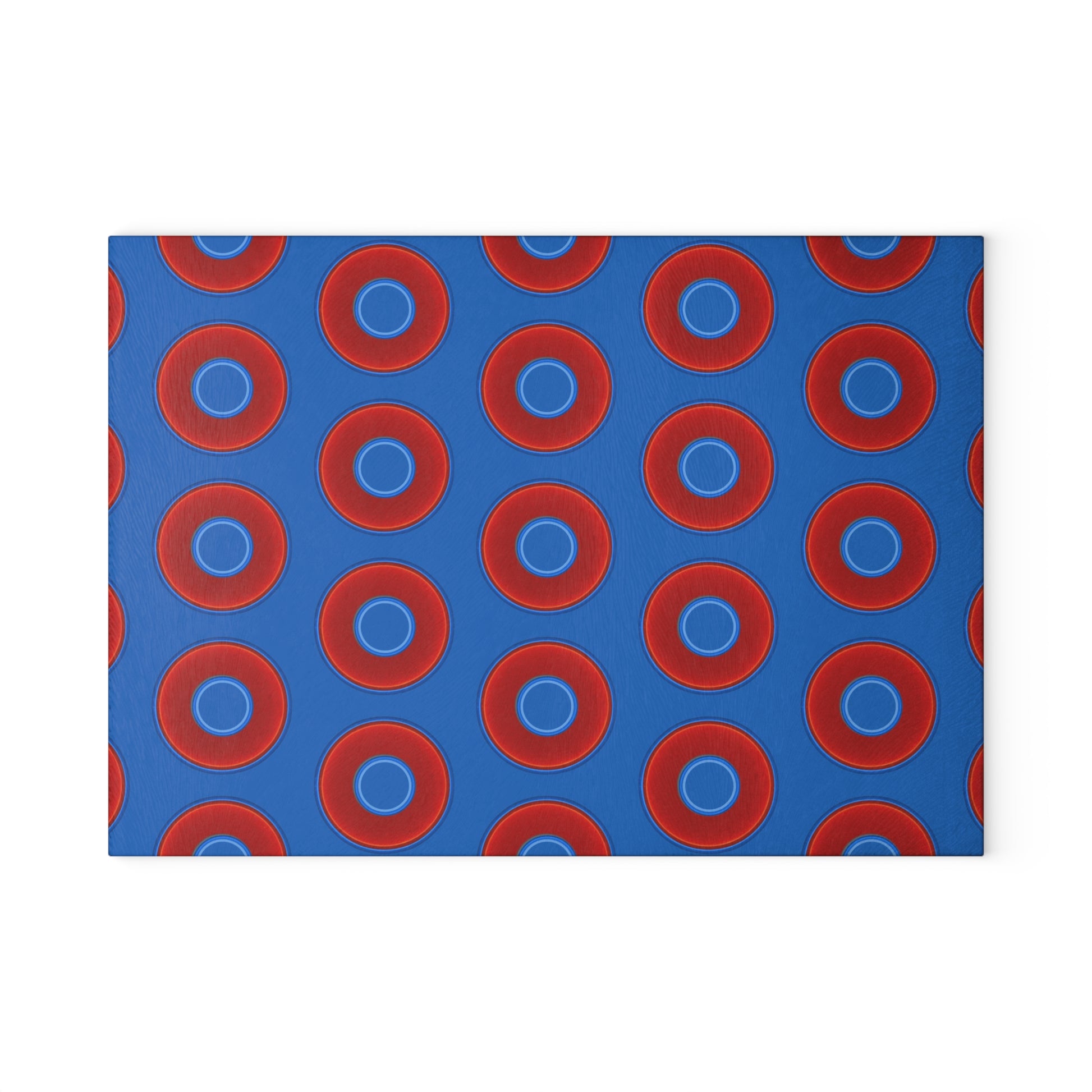 My Friend's Cutting Board - vivid red donuts w/dark royal blue background