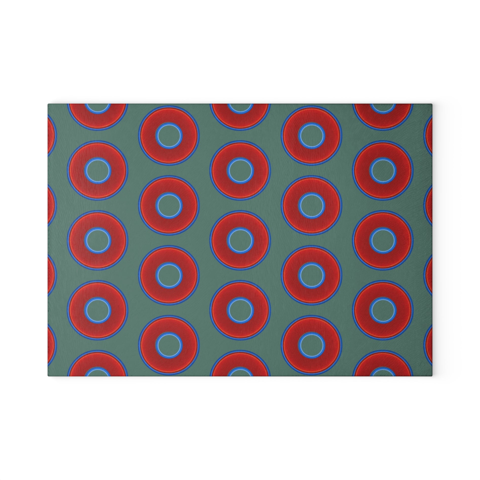 My Friend's Cutting Board - vivid red donuts w/Fenway green background