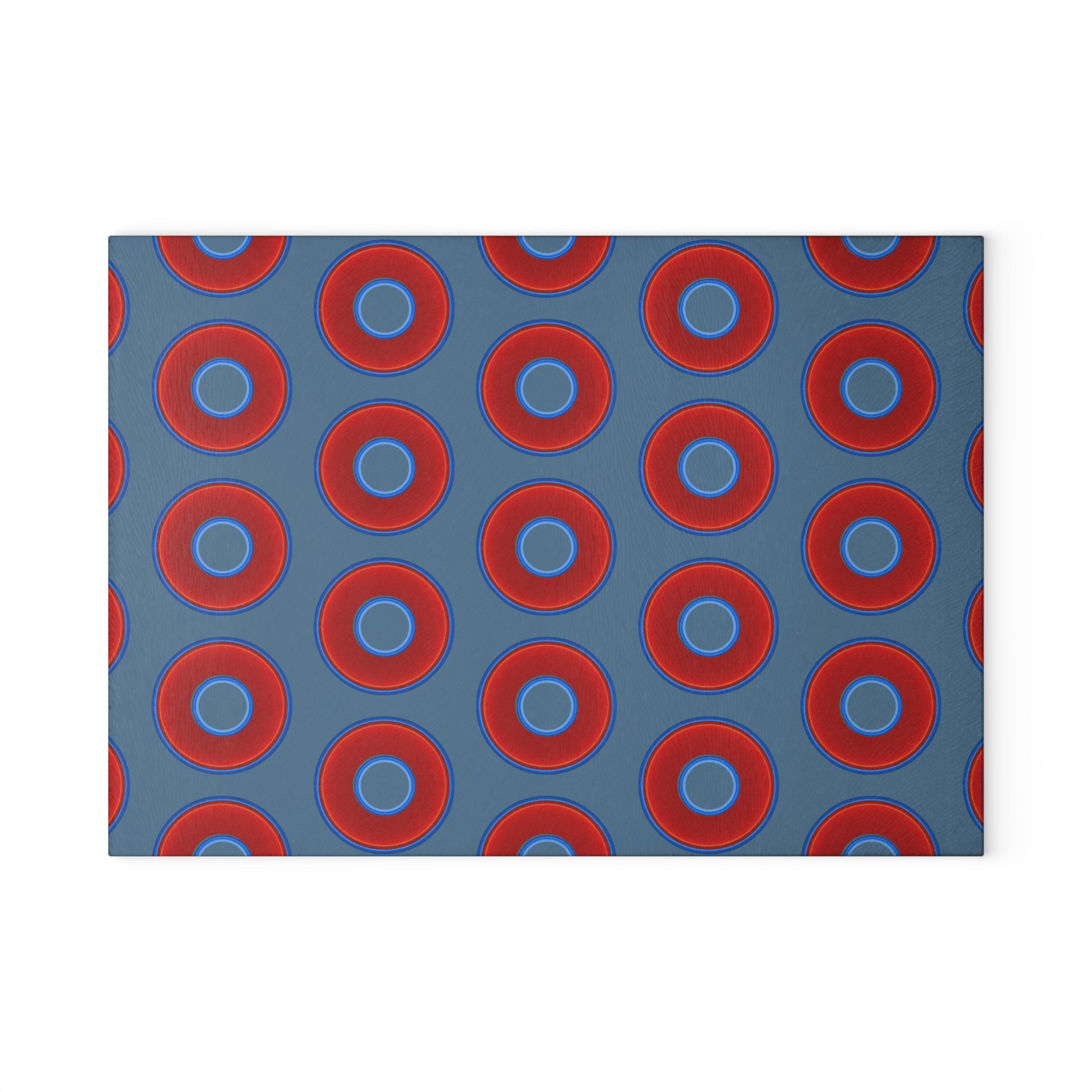 My Friend's Cutting Board - vivid red donuts w/steel blue background